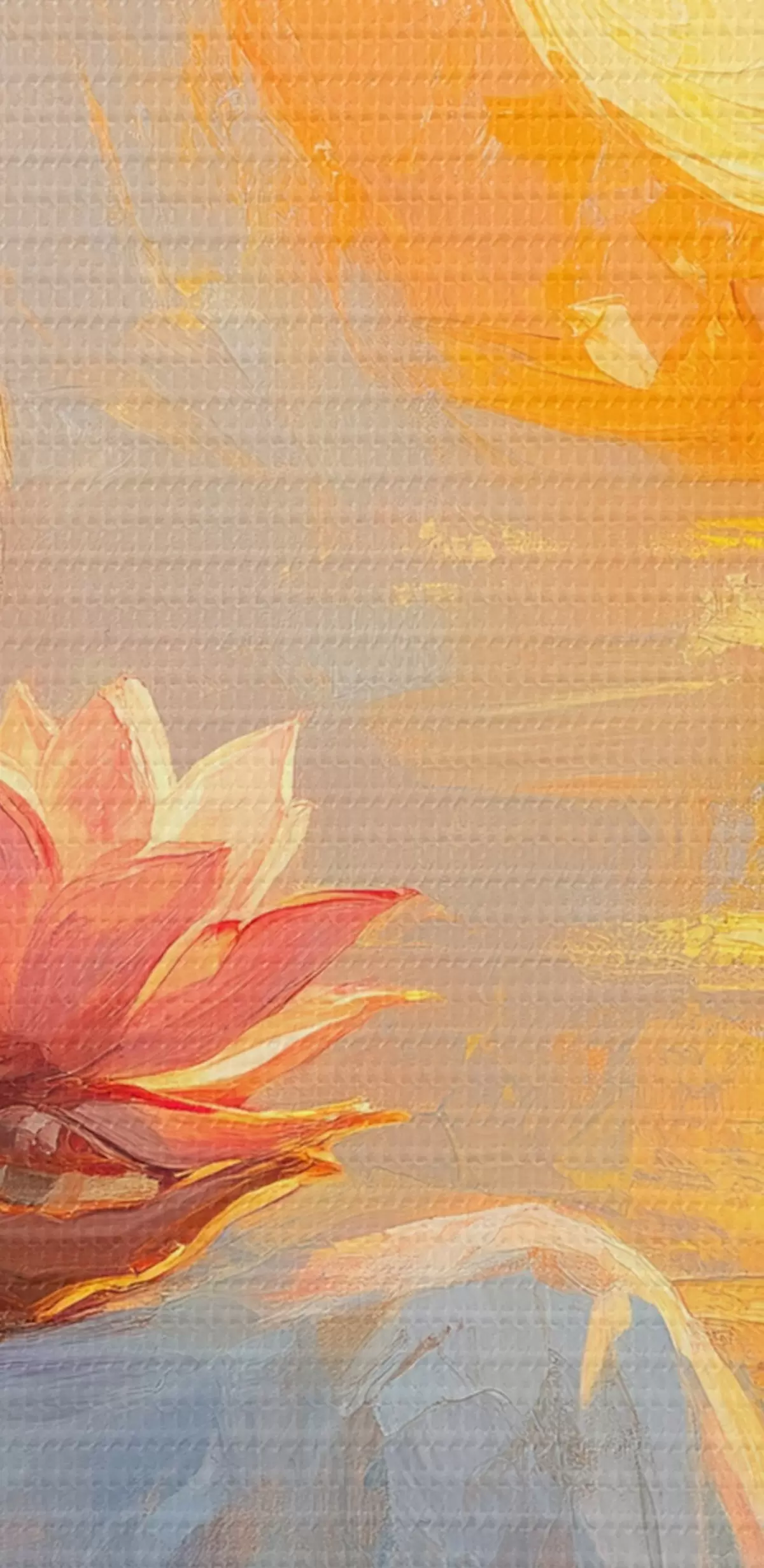 Schilderijen Vrouw met lotusbloem op de zonsondergang, witte vogel, tekening in olieverfstijl s43501