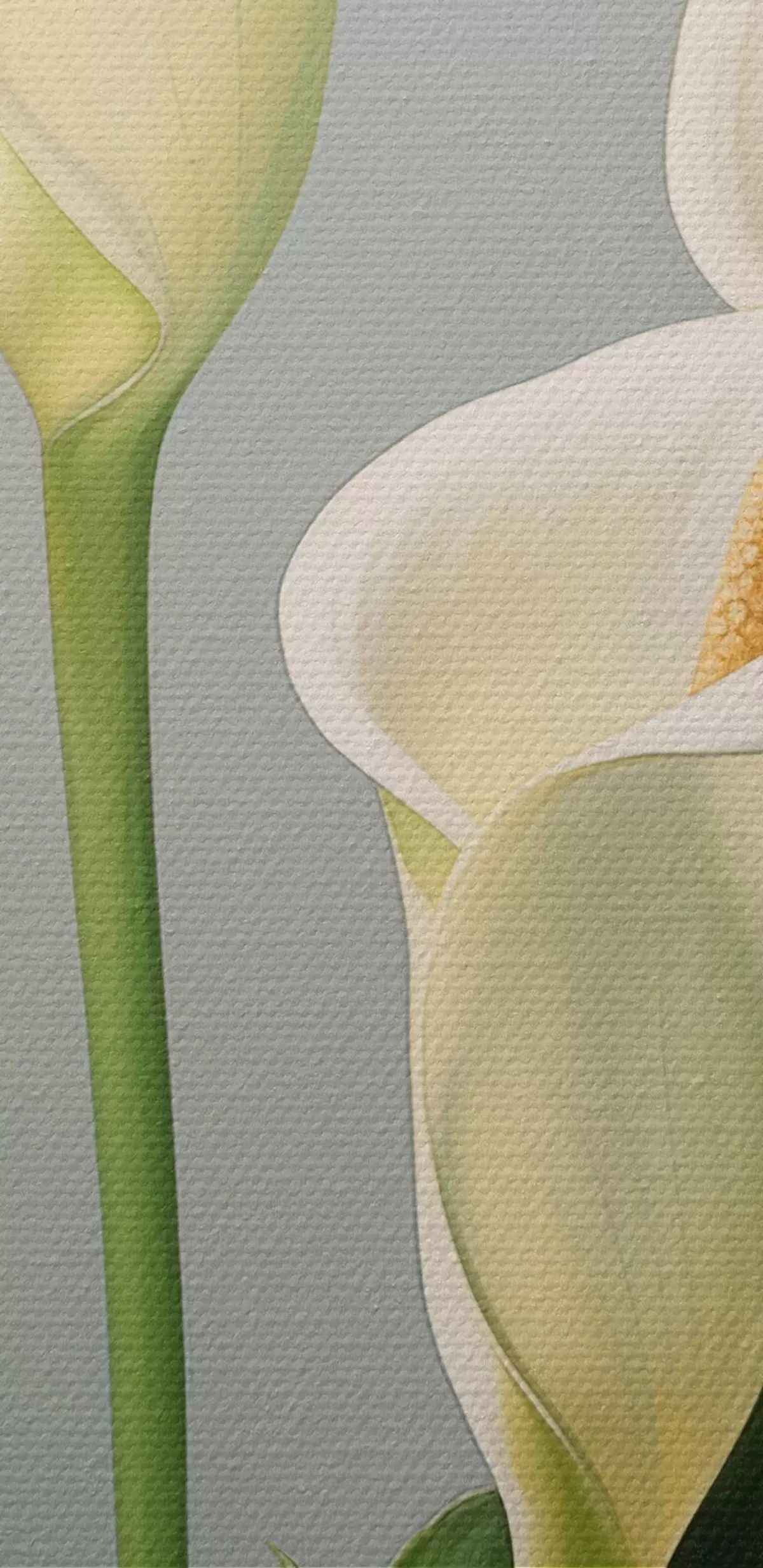Het schilderij kan direct na ontvangst worden opgehangen. Het schilderij wordt opgespannen op een 2 cm breed houten spieraam.