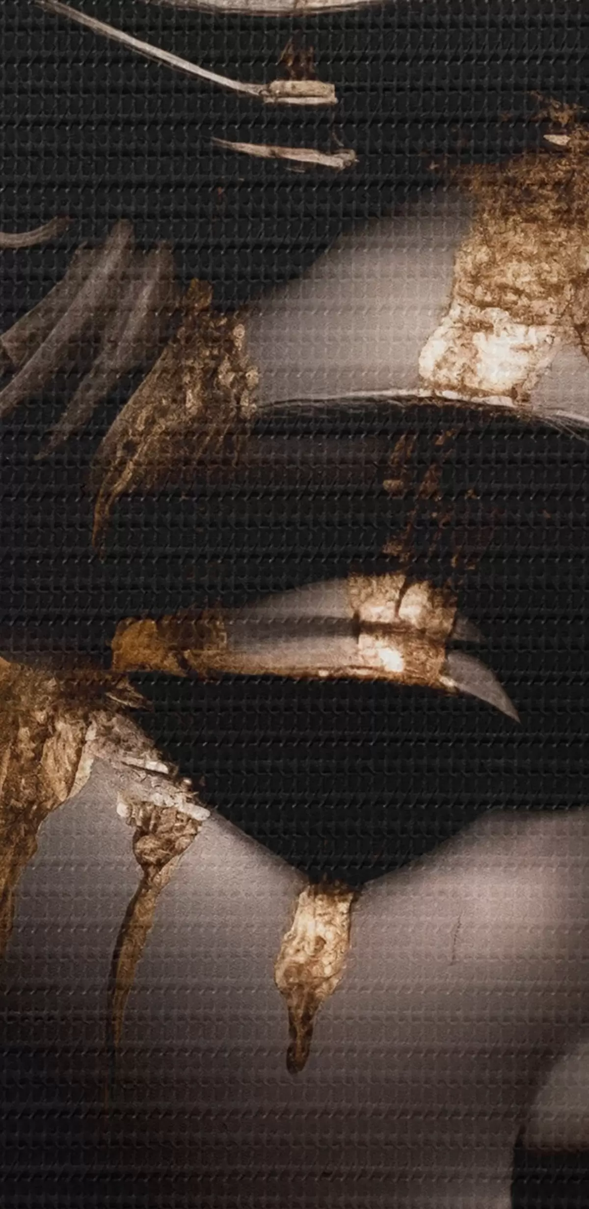 Om het doek op te spannen op spielatten zonder de afbeelding te beschadigen, gebruiken we gespiegeld beeld.