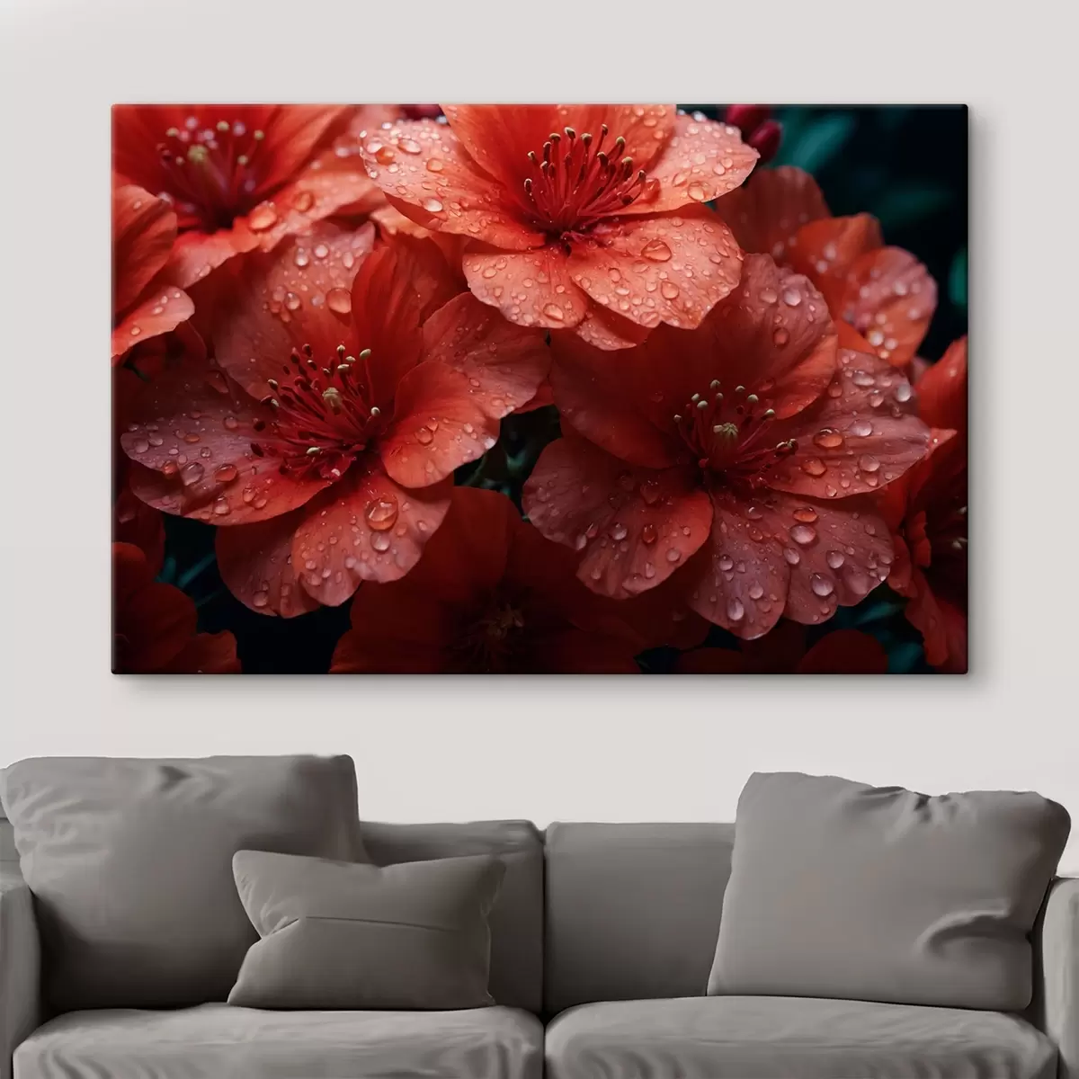 Schilderij Rode bloemen met dauwdruppels Art. s43878