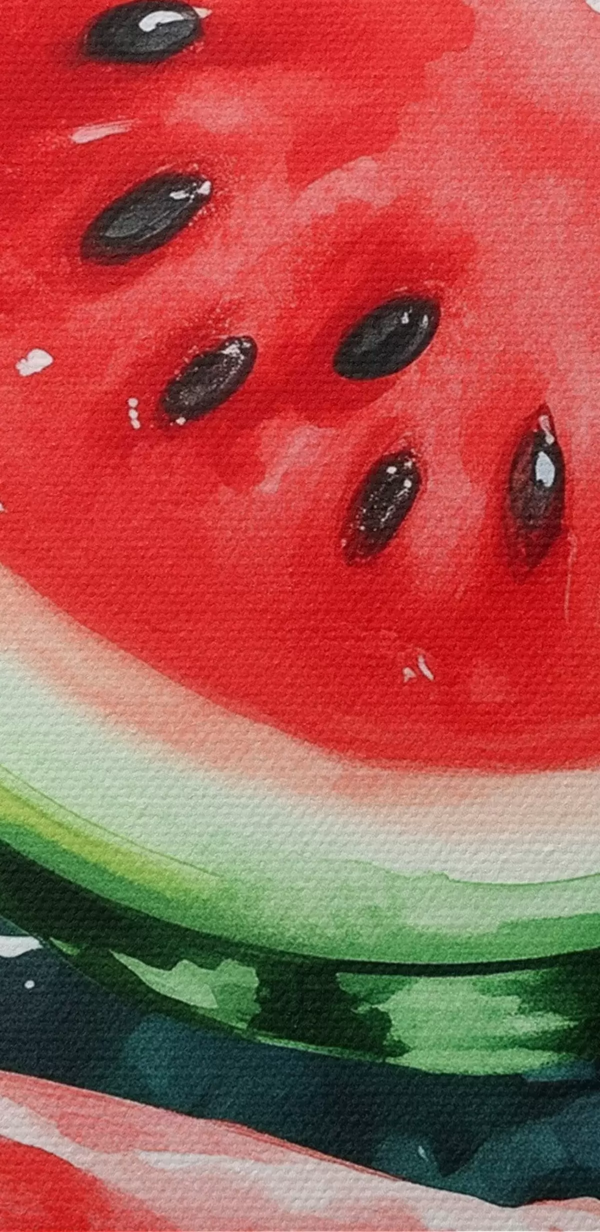 Schilderij Watermeloenplakken met ijsblokjes en munt, aquarelstijl Art. s43880
