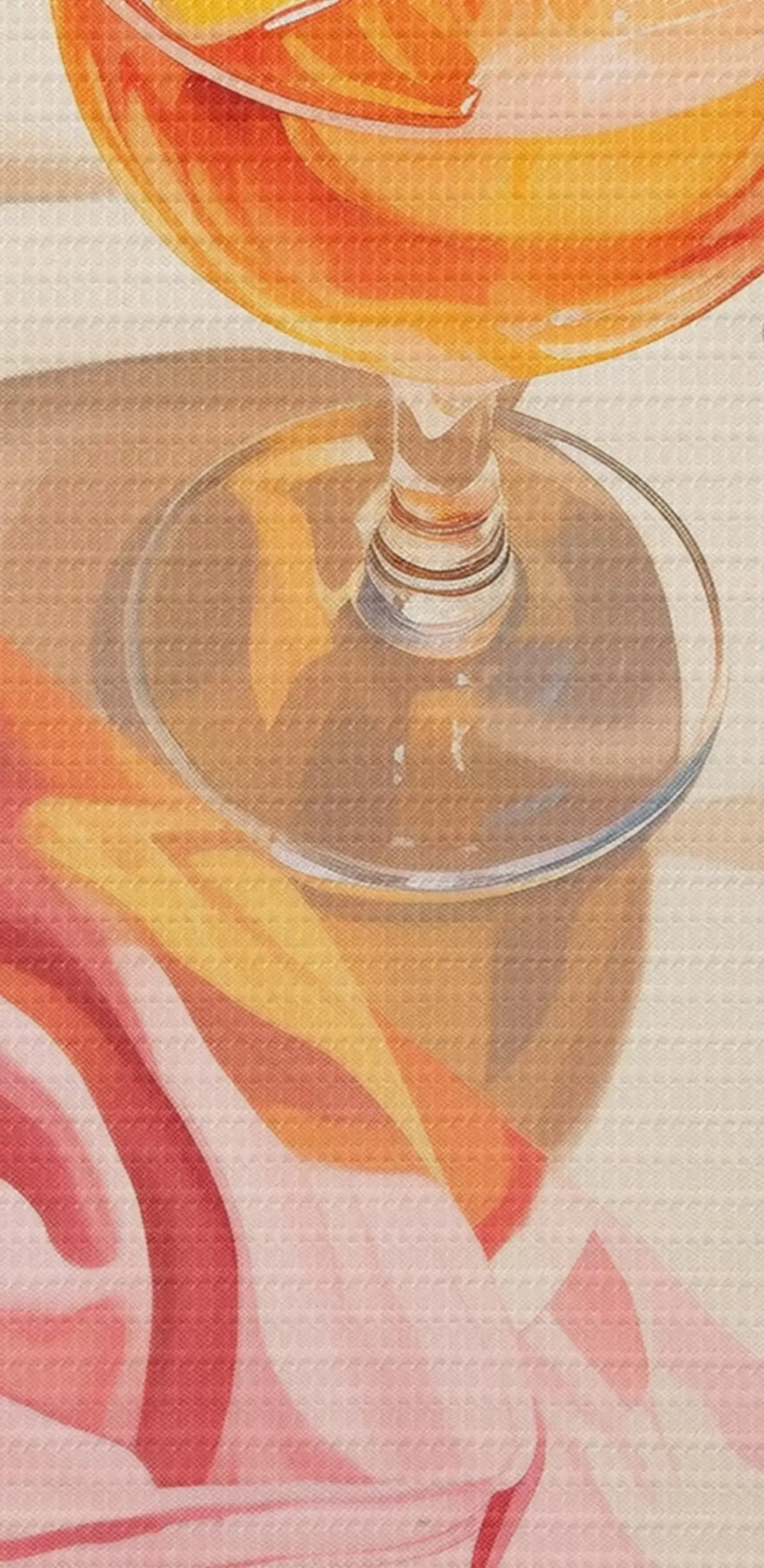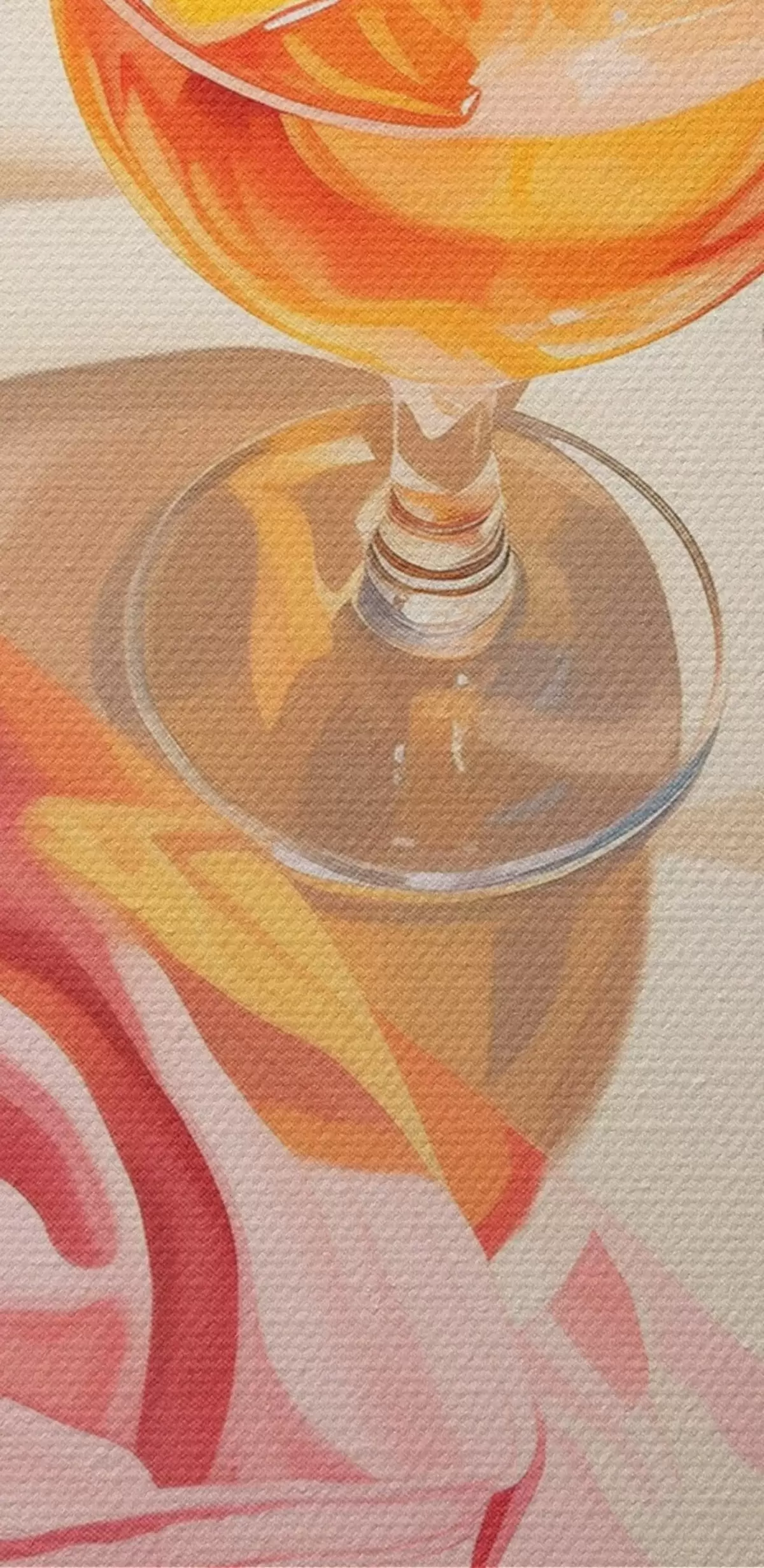 Schilderij Zomertijd, glazen met champagne, groene planten, warme kleuren Art. s43885