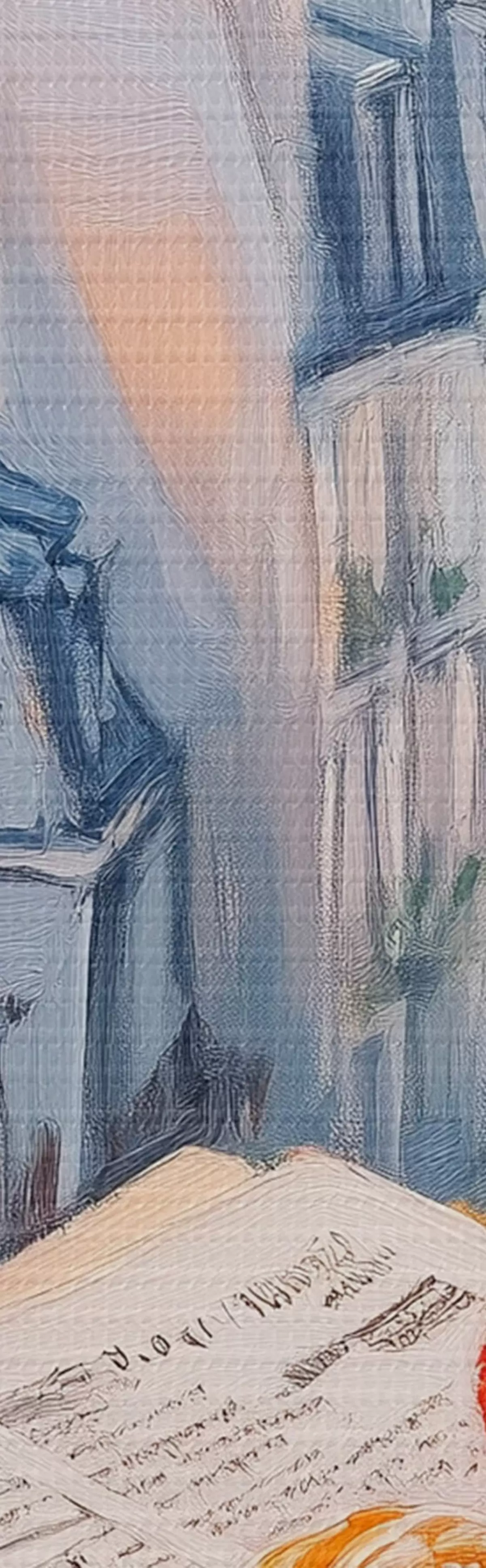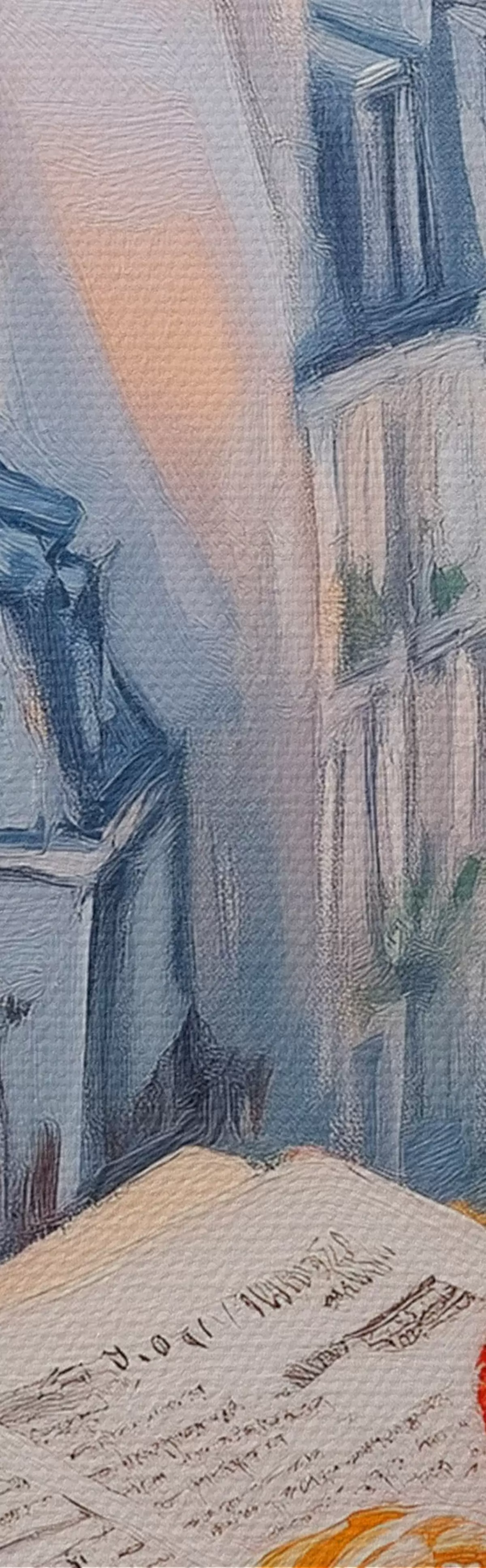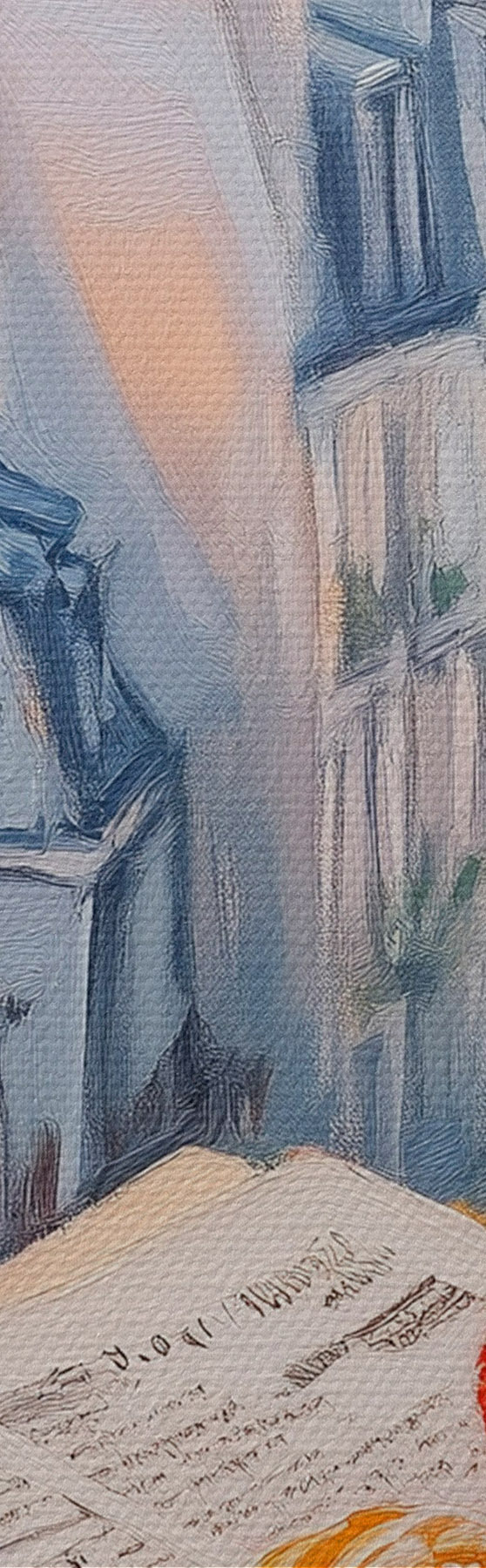Schilderijen Zonsopgang op het balkon in Parijs, Eiffeltoren, aardbeien, koffie, dagboek s43890