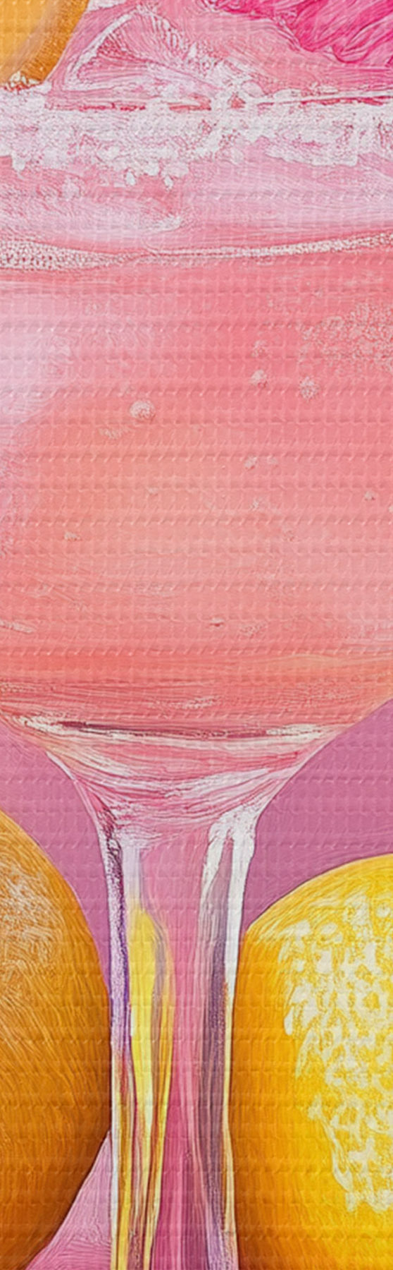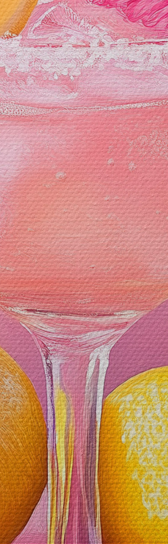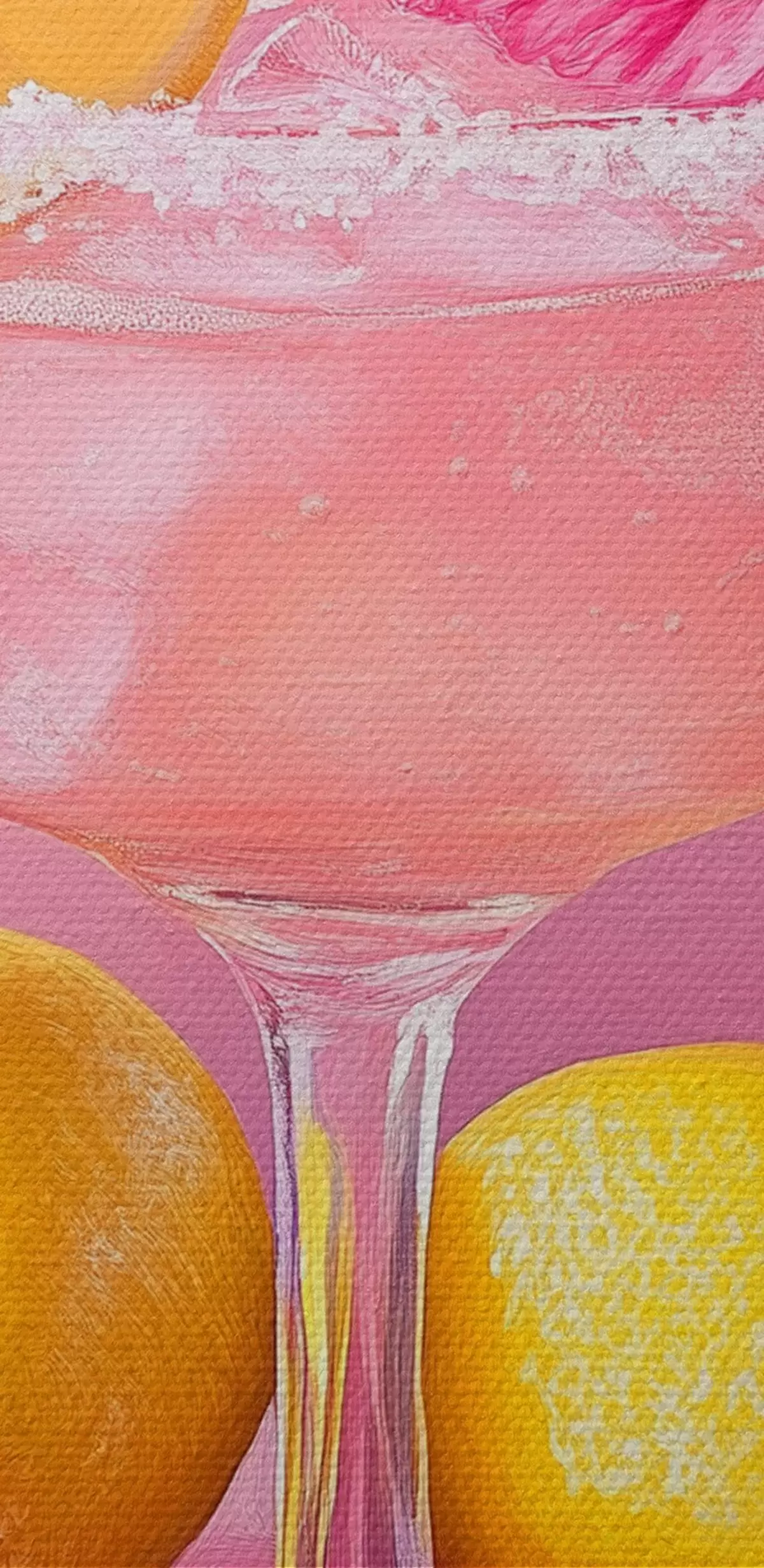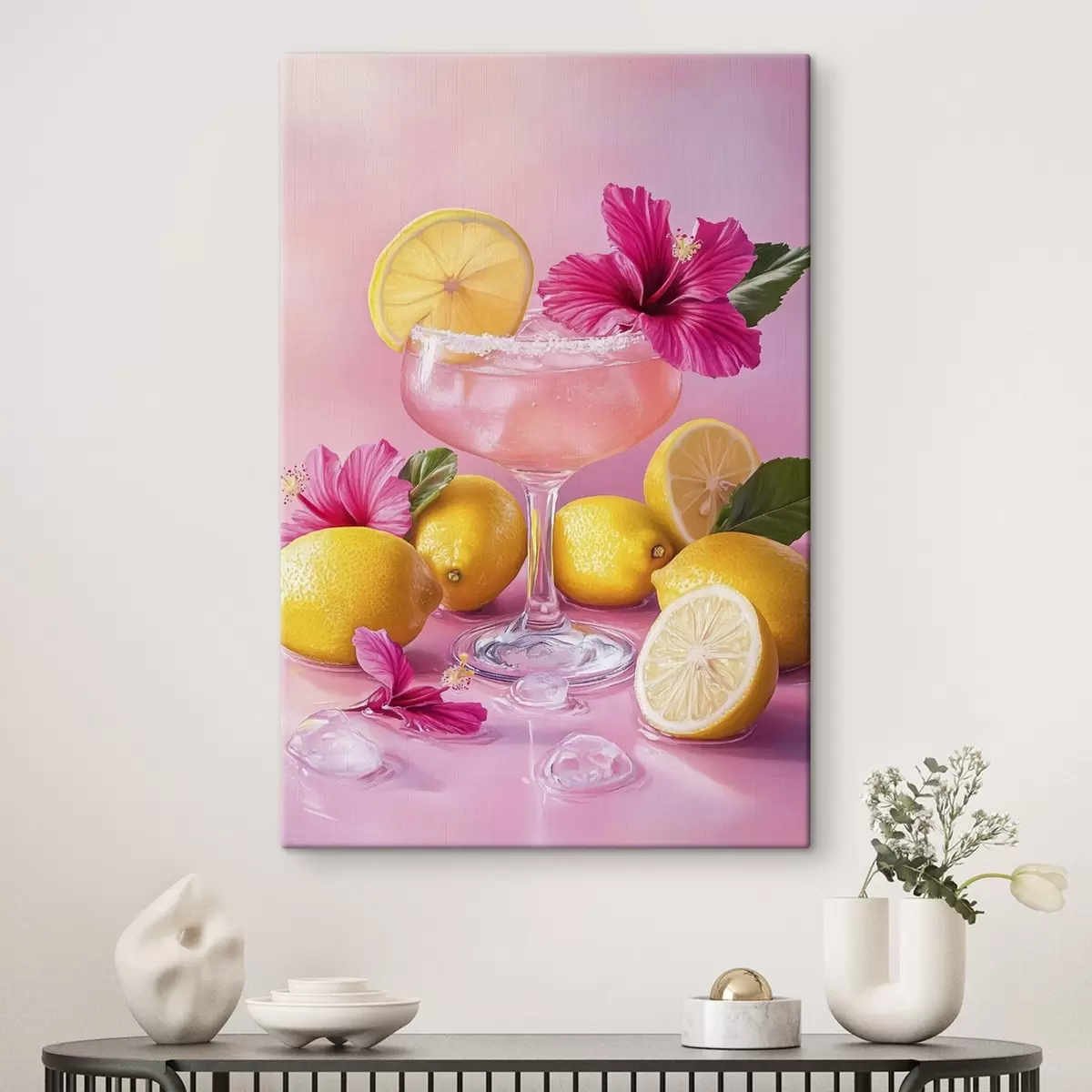 Schilderij Zomercocktail met bloemen en citroenen, roze kleuren, aquarelstijl Art. s43895