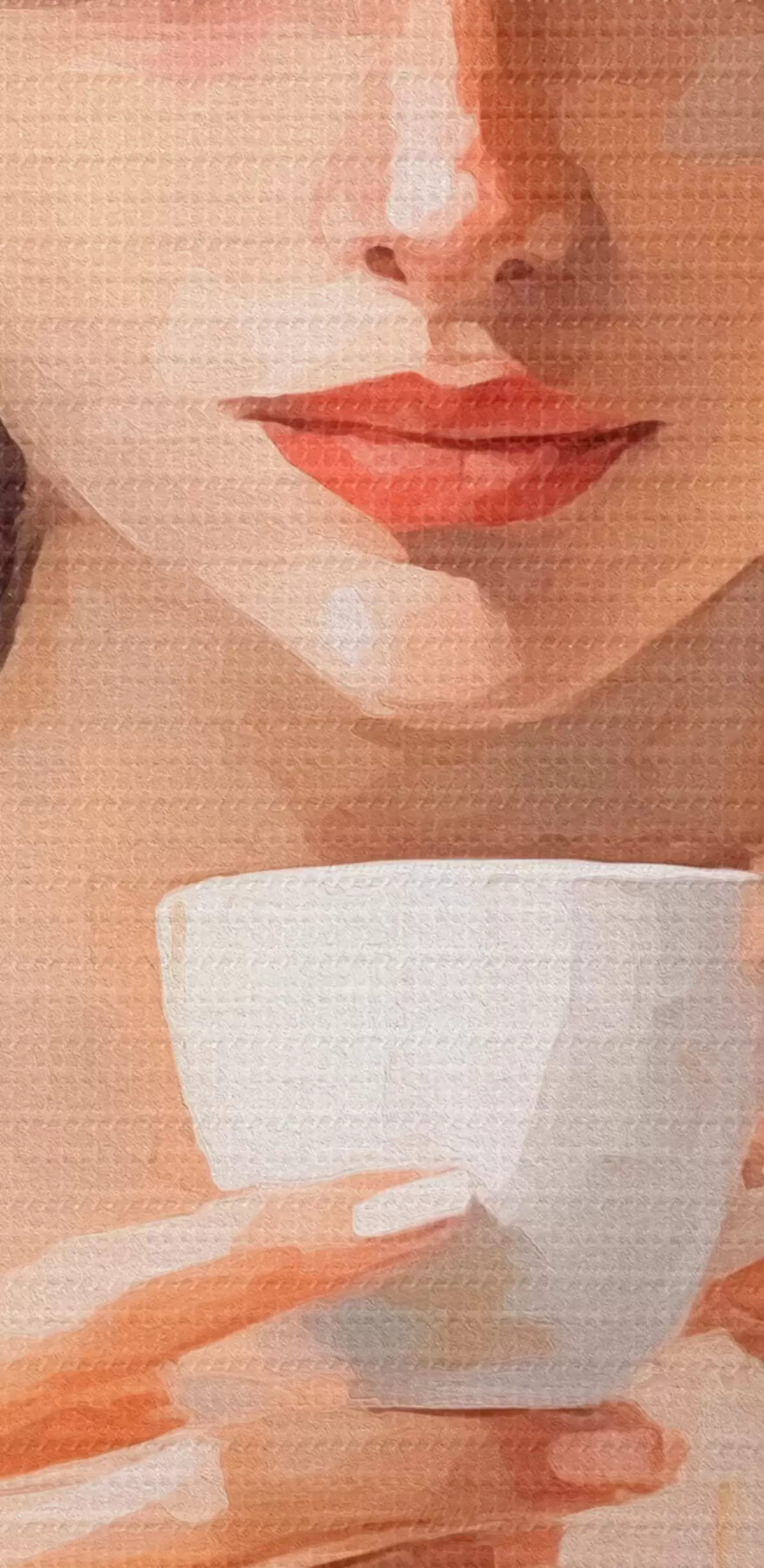 Er zijn drie soorten materiaal te bestellen: Economic Canvas - een dicht en duurzaam materiaal voor digitaal printen, identiek aan schildersdoek, waterdicht oppervlak, realistische weergave van details, materiaal met gemiddelde korrel. Premium Canvas - de textuur lijkt op die van schildersdoek (verweven kleine draden). Zachte, gedetailleerde reproductie van de afbeelding op een mat oppervlak. Eco-Premium - hoogwaardige 100% katoenen stof. Dankzij de natuurlijke katoenvezels is het materiaal duurzaam en slijtvast. Uitstekende kleurweergave en detail.