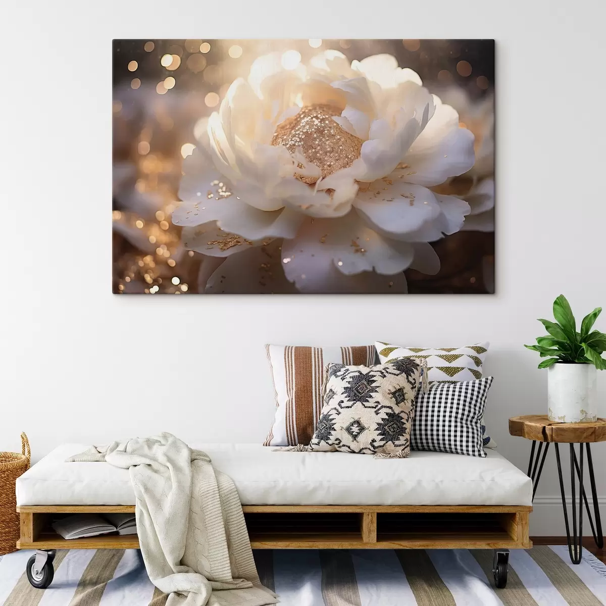Schilderij Witte bloem met munten in het midden Art. s43948