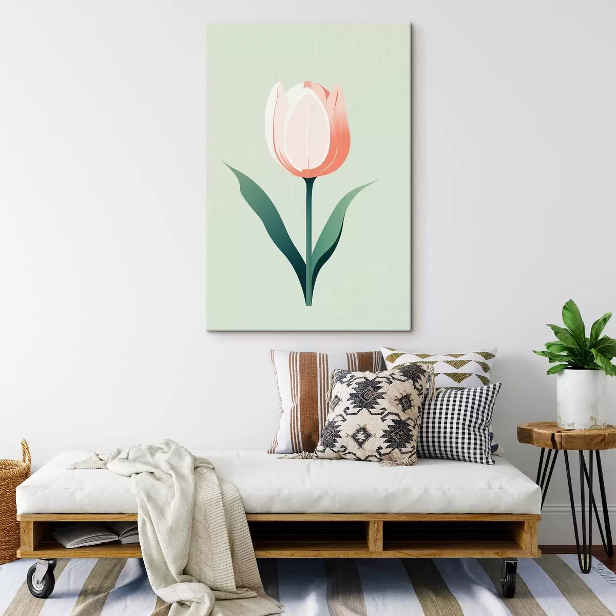 Schilderij Geschilderde tulp op lichtgroene achtergrond Art. s44000