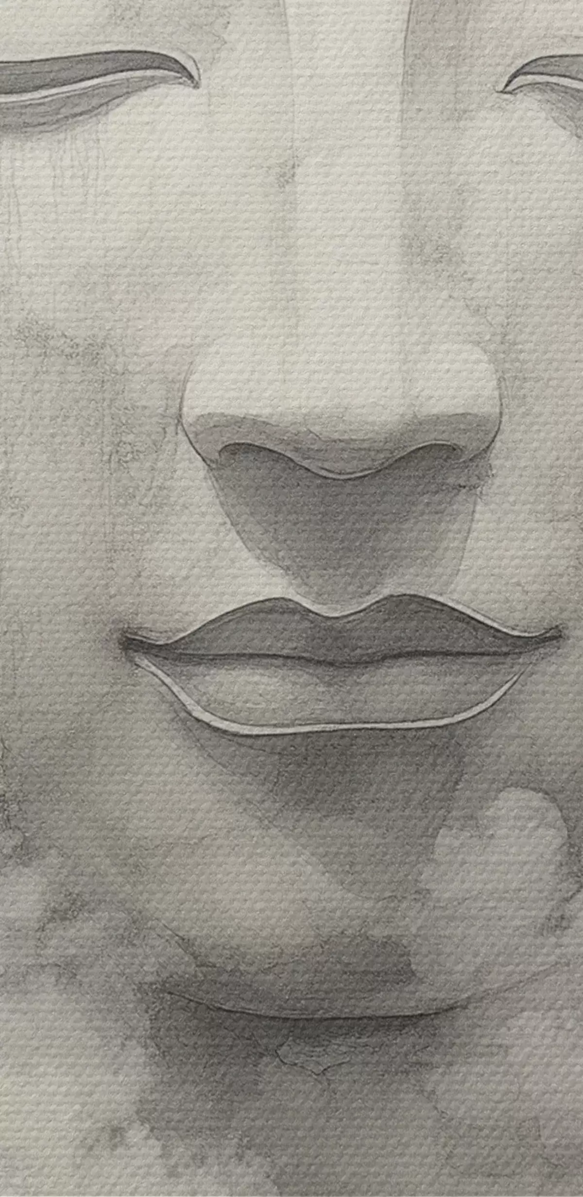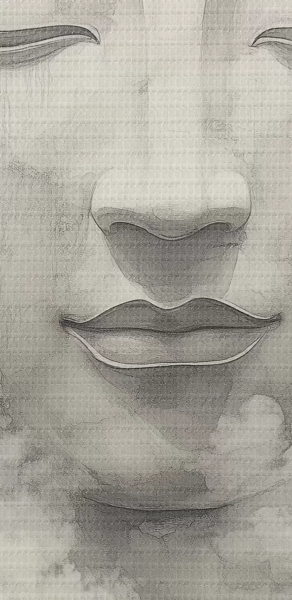 Schilderijen Boeddhisme, monnik in het rode gewaad, mist, aquarel stijl s44007