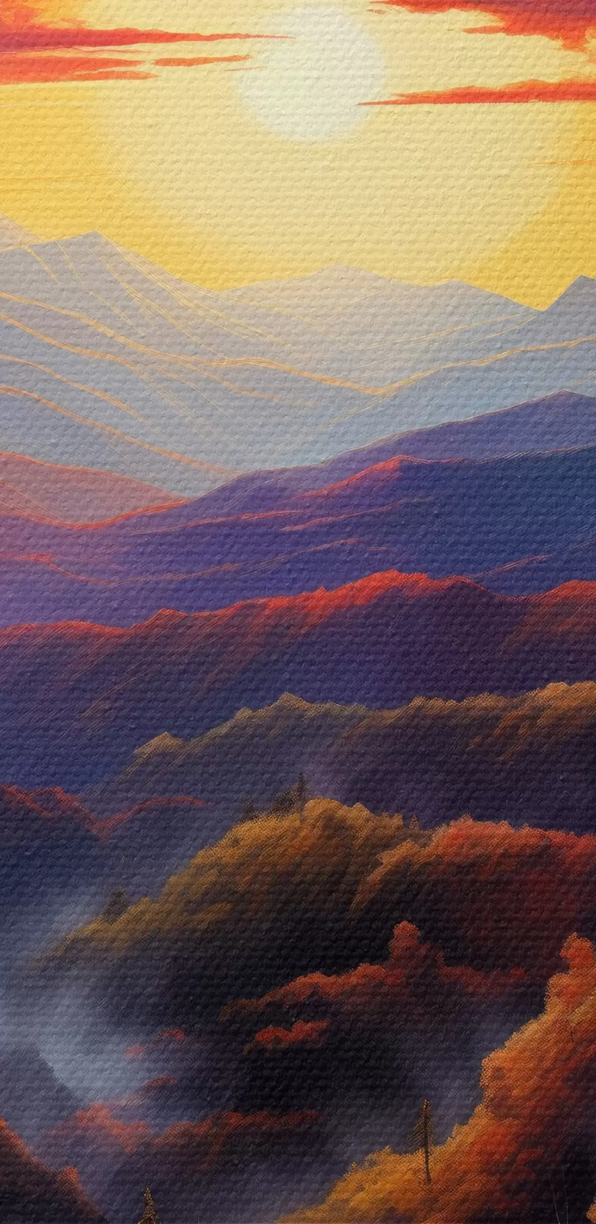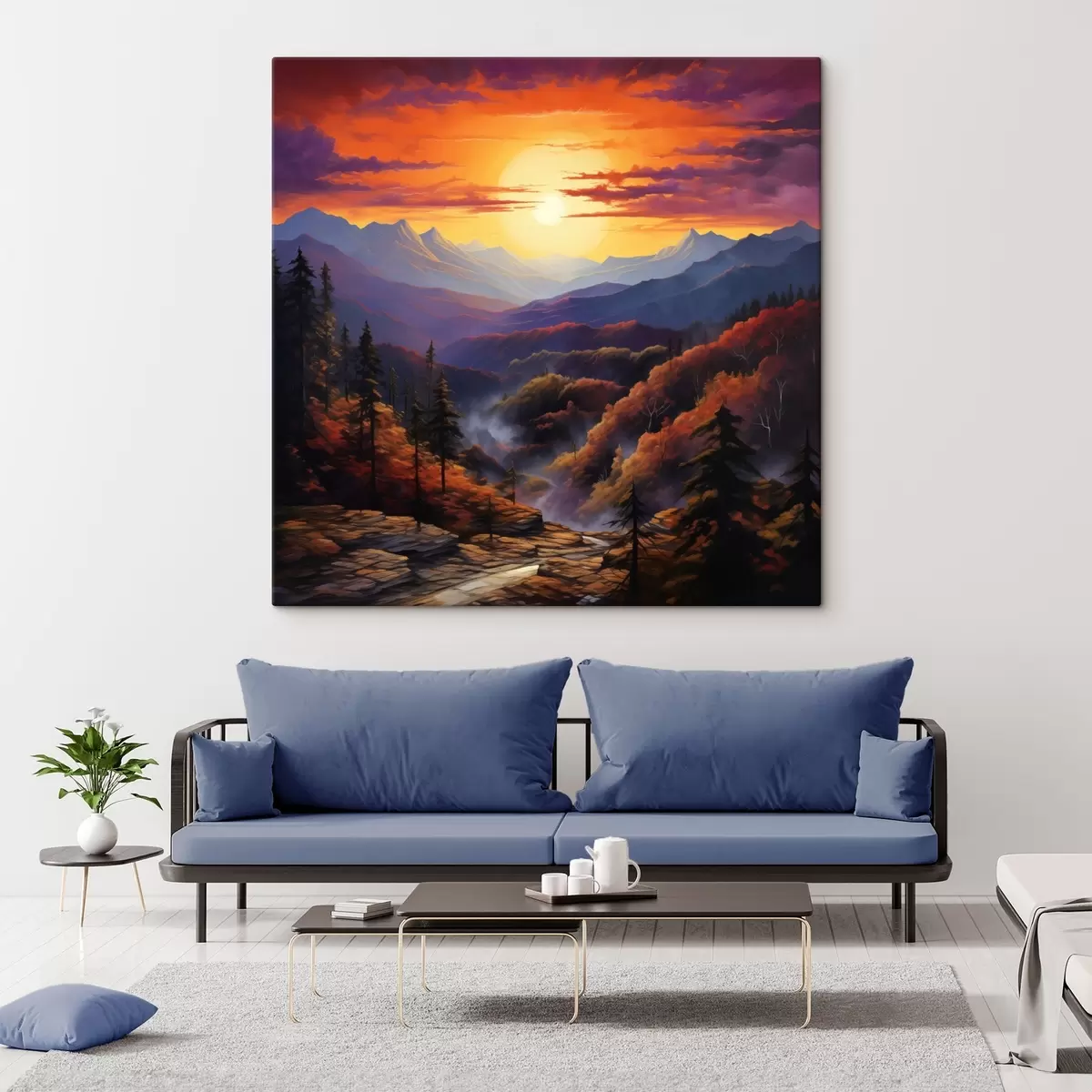 Schilderij Bos en bergen bij zonsondergang Art. s44045