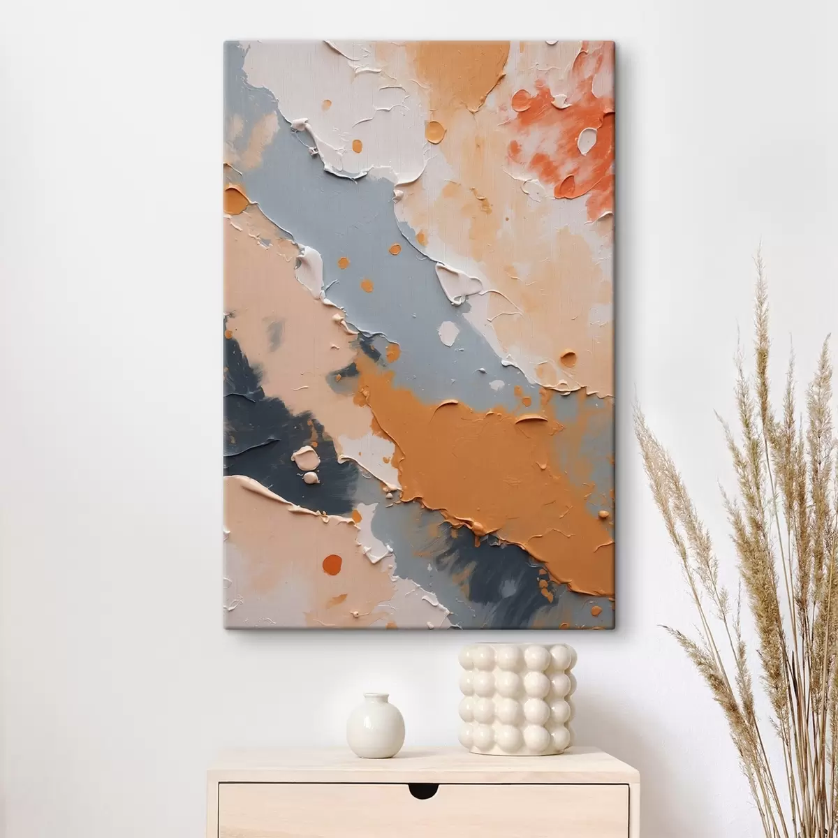 Het schilderij kan direct na ontvangst worden opgehangen. Het schilderij wordt opgespannen op een 2 cm breed houten spieraam.