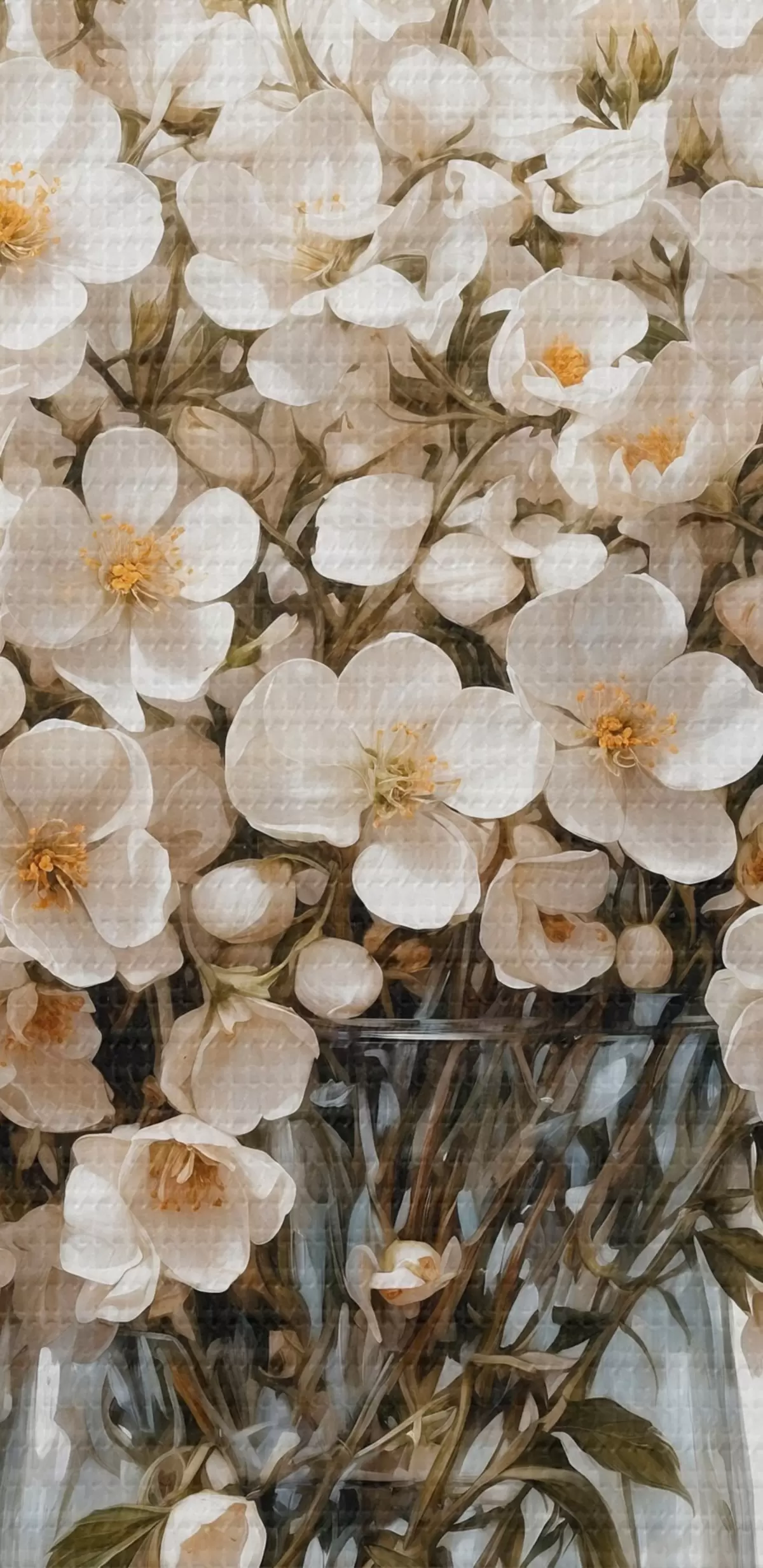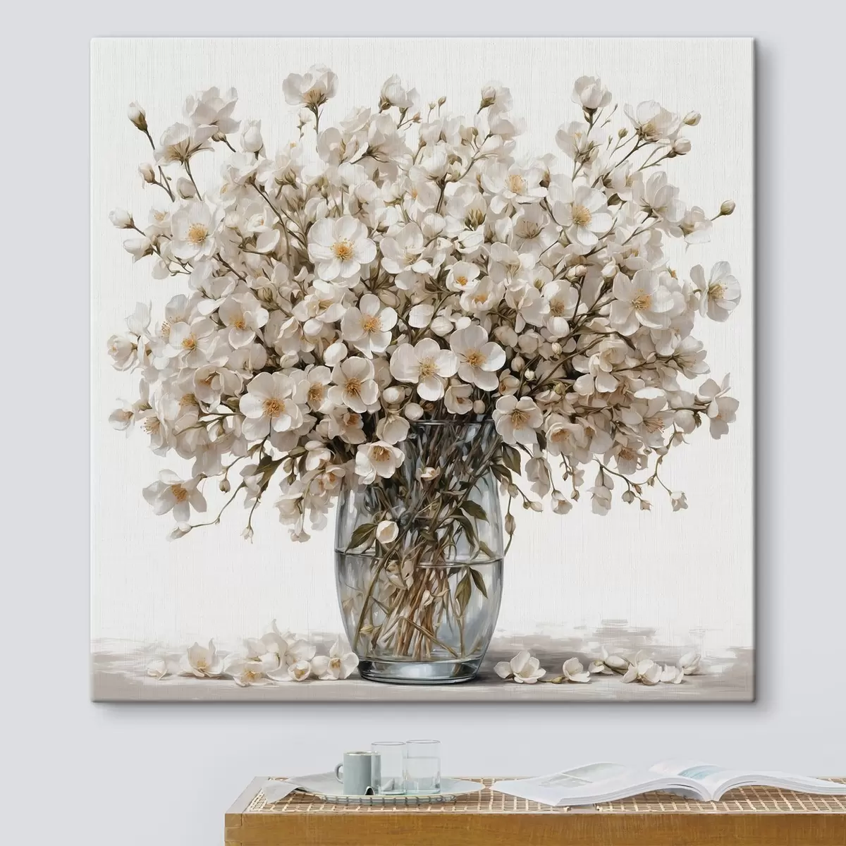 Schilderij Witte bloemen in transparante vaas Art. s44092