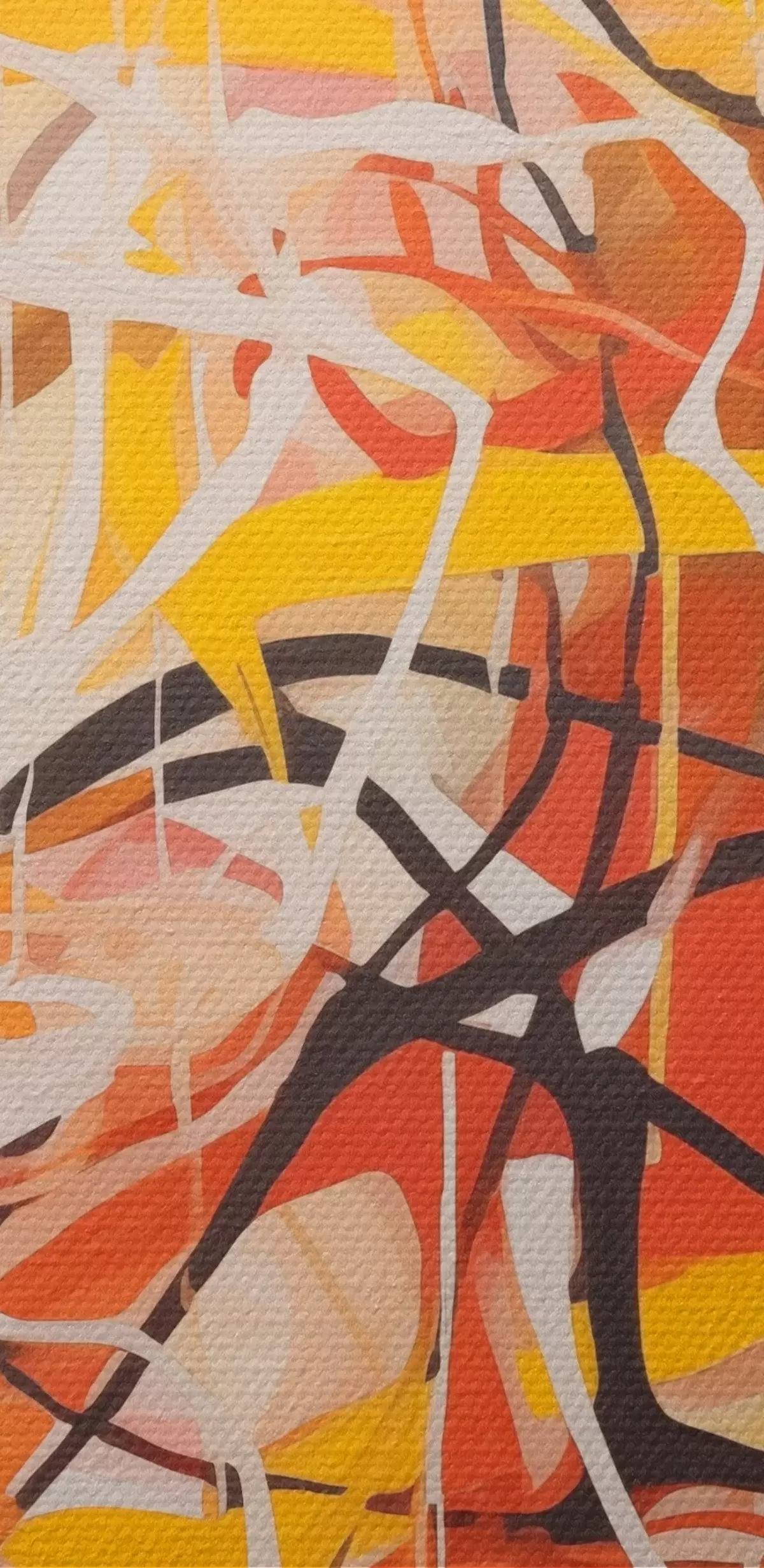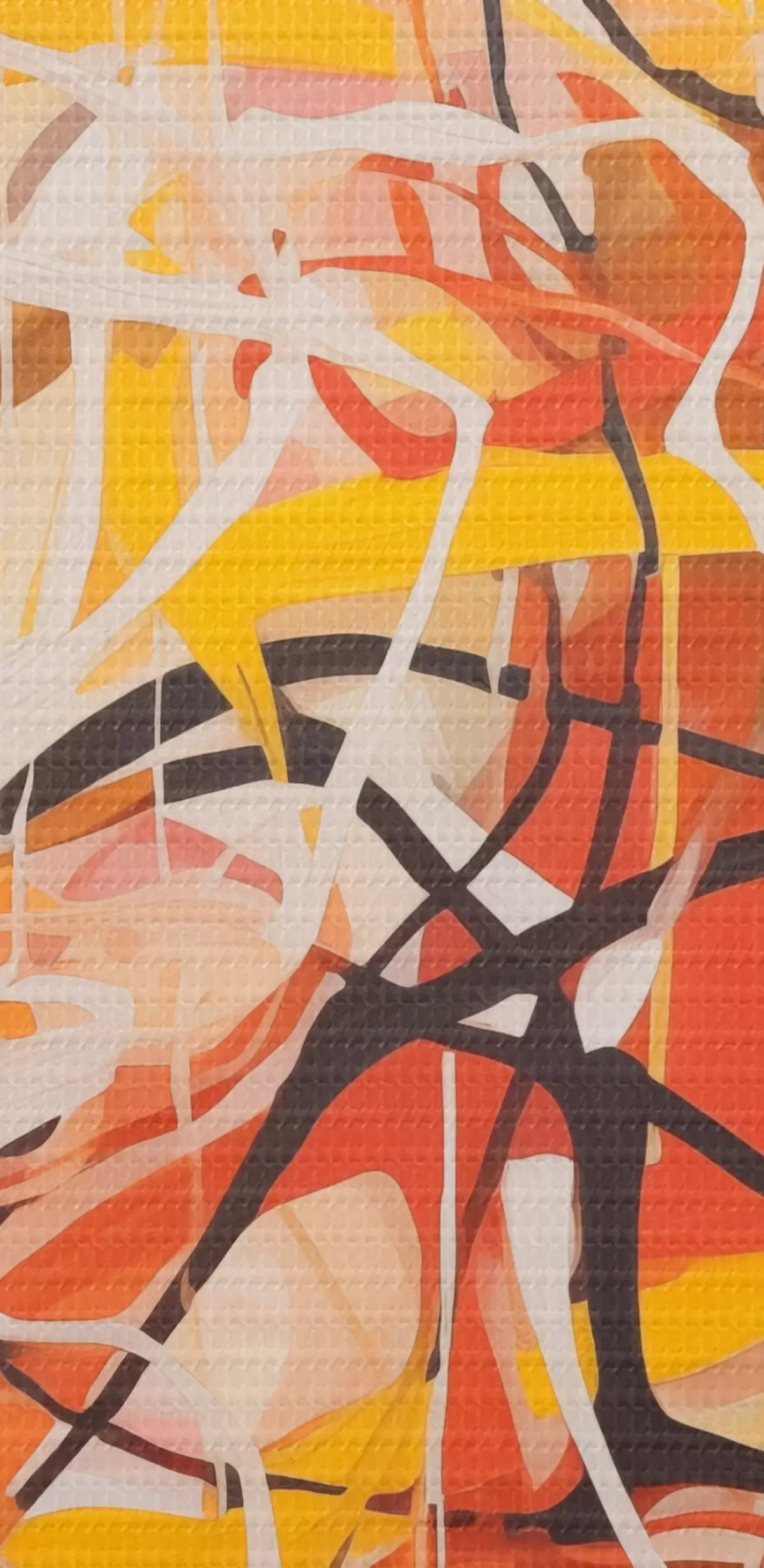Het schilderij kan direct na ontvangst worden opgehangen. Het schilderij wordt opgespannen op een 2 cm breed houten spieraam.