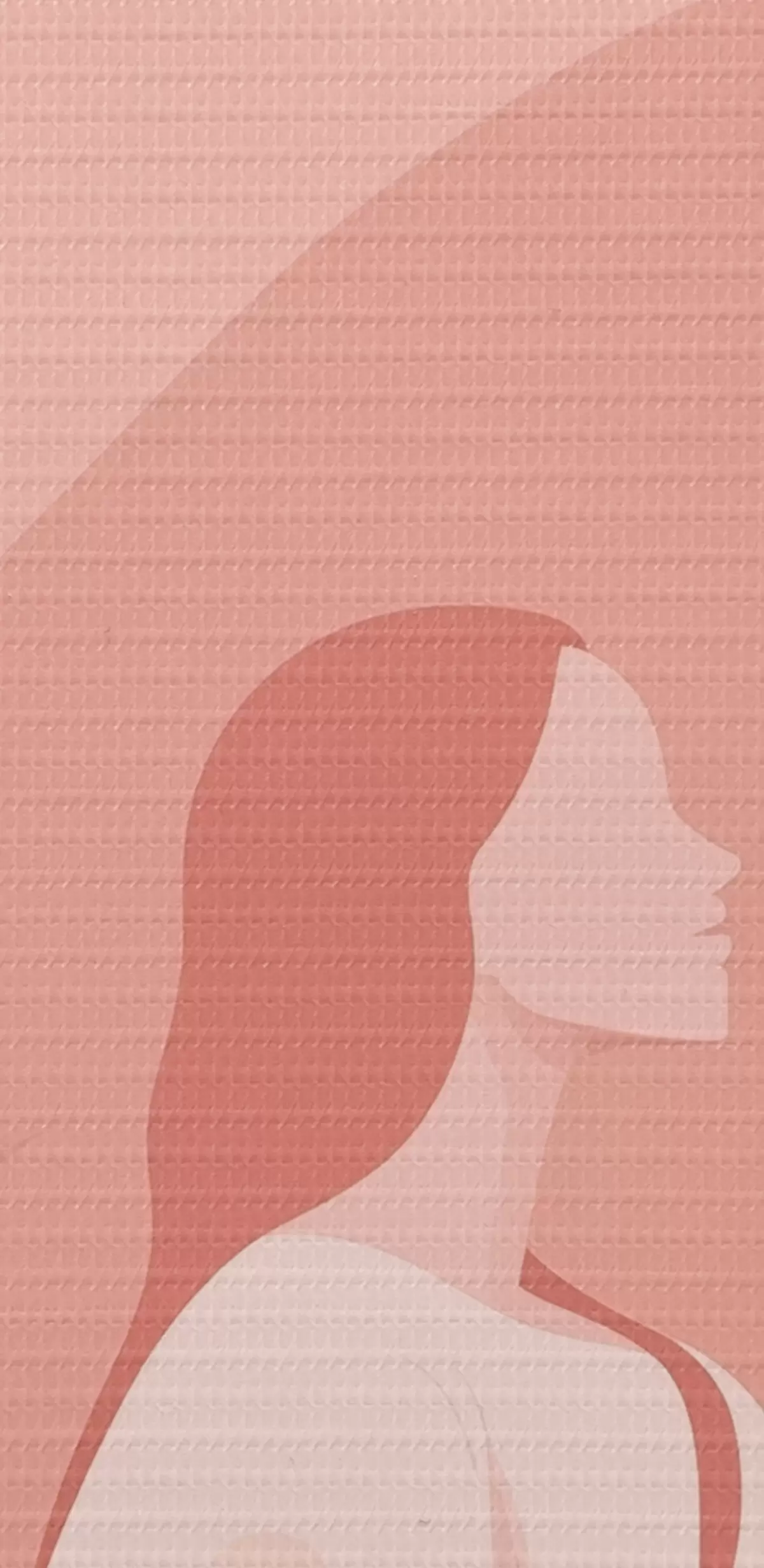 Schilderij Vrouw in meditatie, vlakke stijl, tropische planten, roze kleuren Art. s44154