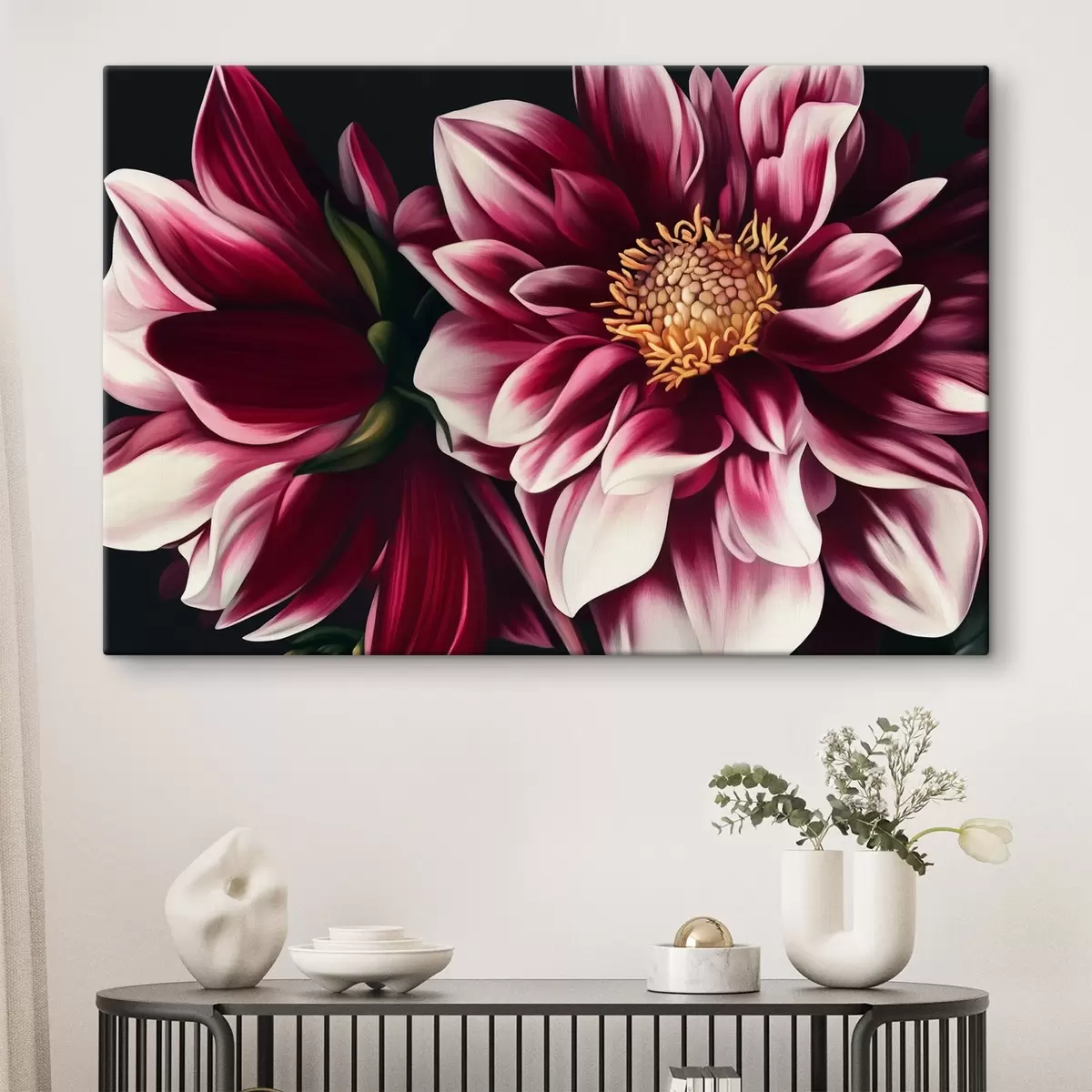 Je kunt het schilderij ophangen aan schroeven. Hiervoor leveren we bevestigingen bij onze foto's, zodat je de foto gemakkelijk kunt ophangen.