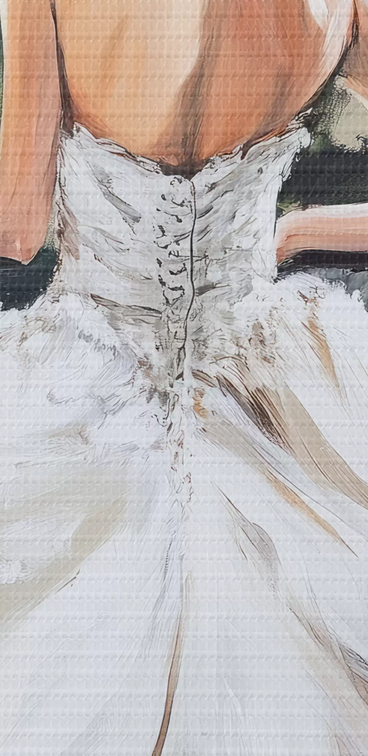 De fijne weving van draden op dit doek lijkt op het oppervlak van professionele schildersdoeken.