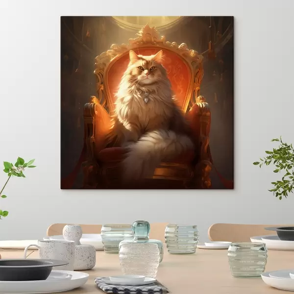 Schilderij Vorstelijke kat met amberkleurige ogen op een troon in de stralen van glorie in barokstijl Art. s44250