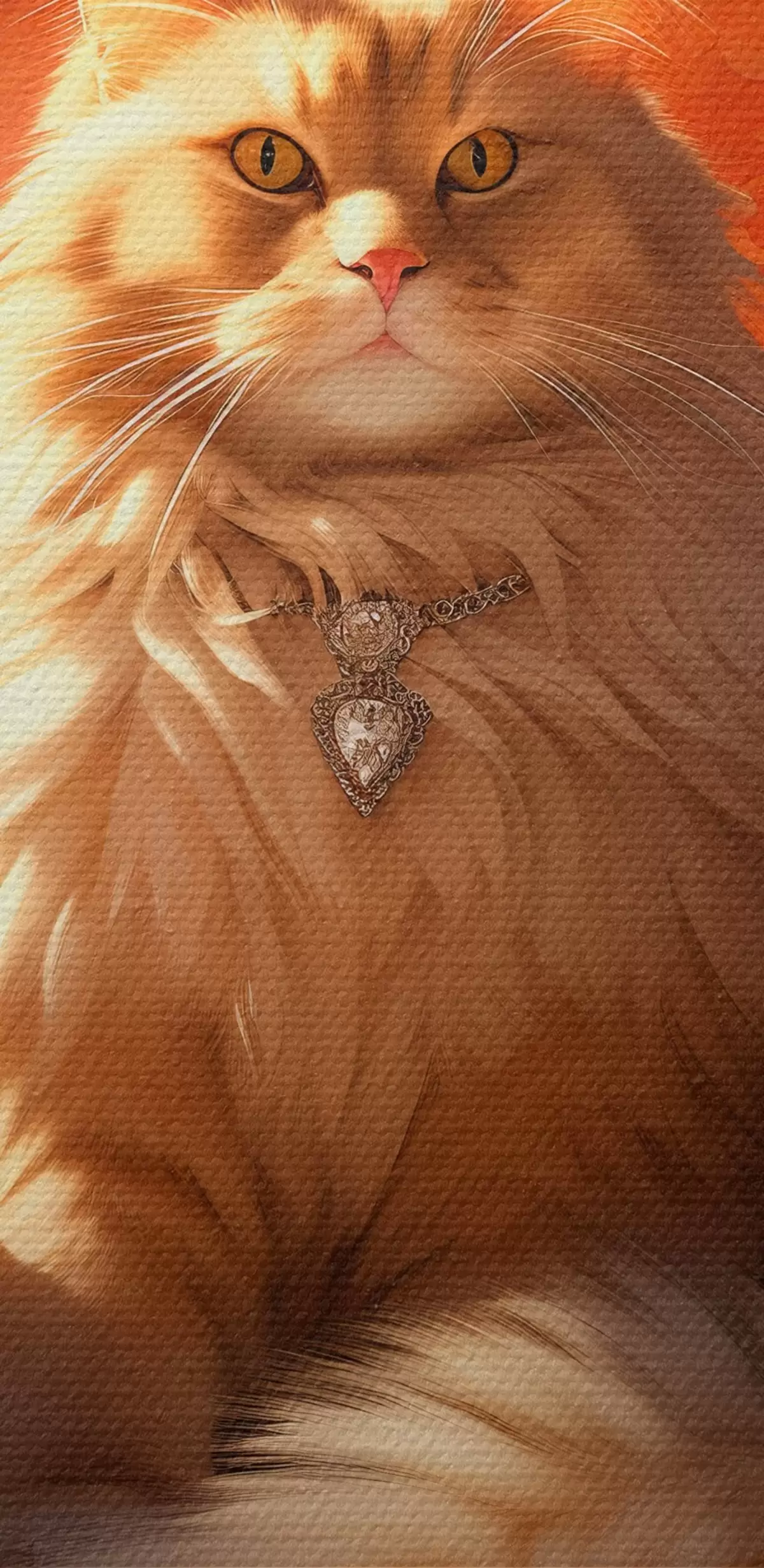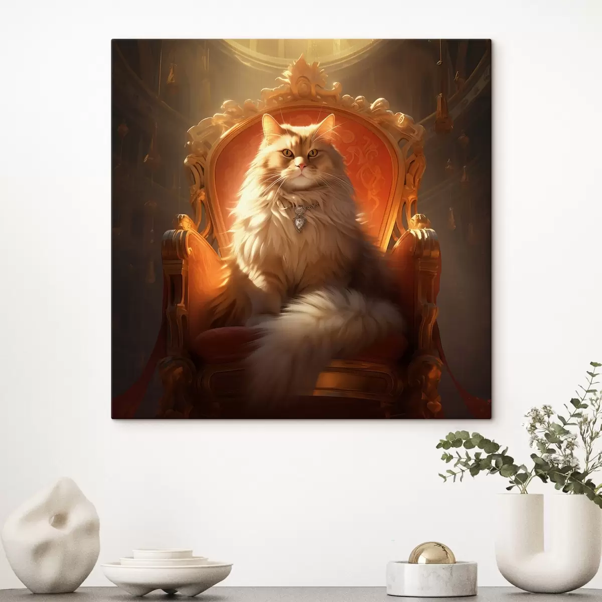 Schilderij Vorstelijke kat met amberkleurige ogen op een troon in de stralen van glorie in barokstijl Art. s44250