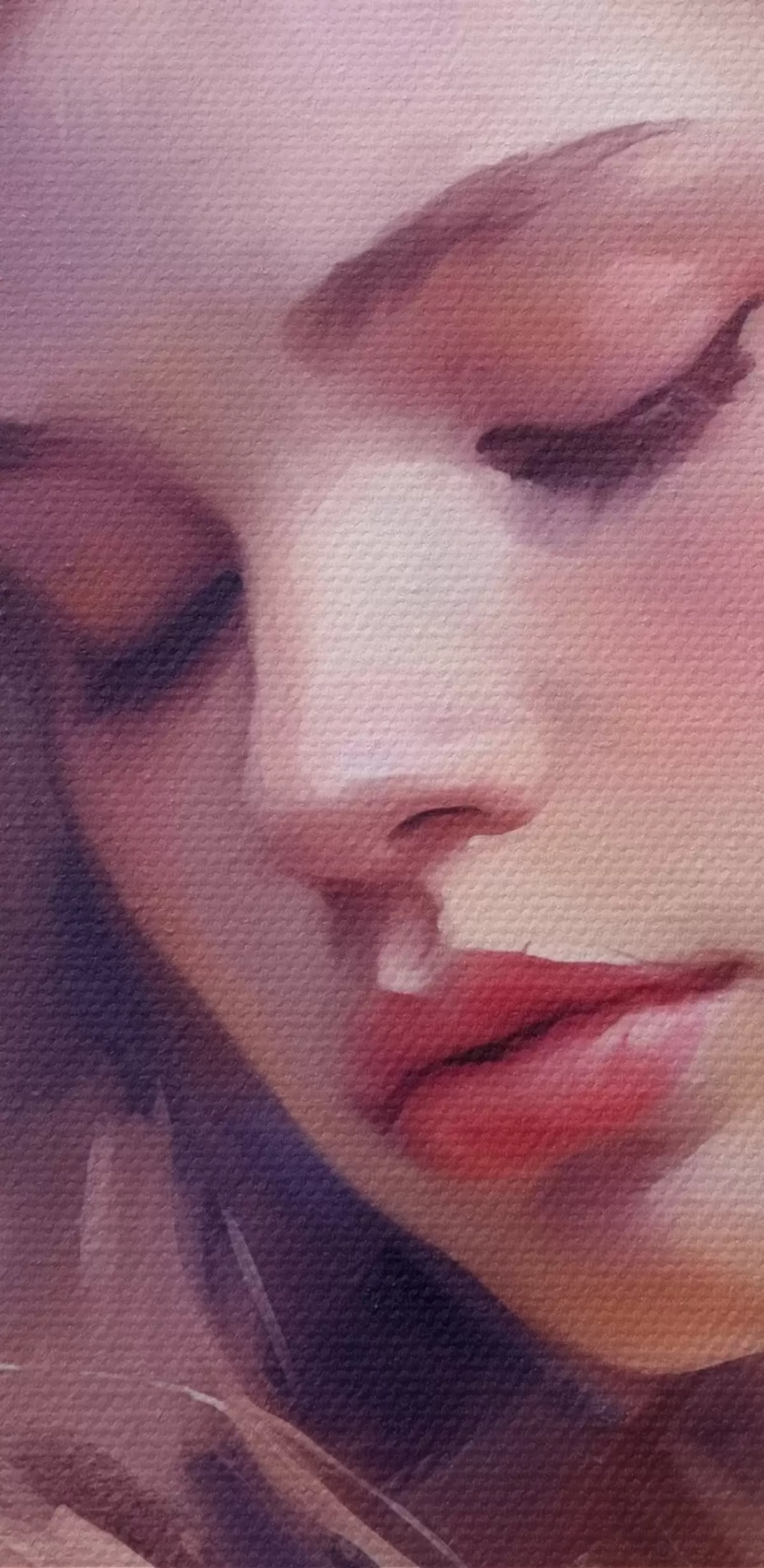 De fijne weving van draden op dit doek lijkt op het oppervlak van professionele schildersdoeken.