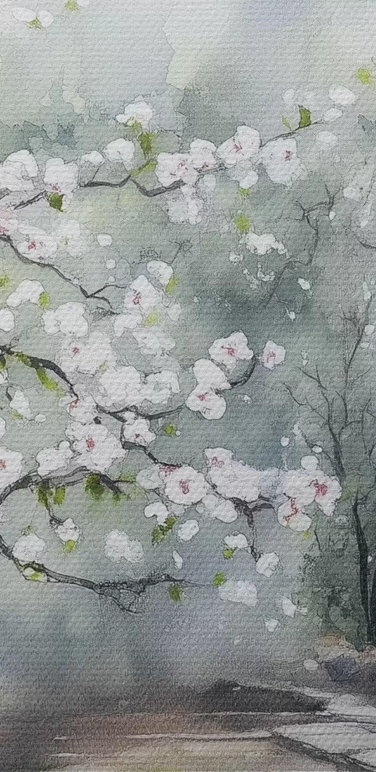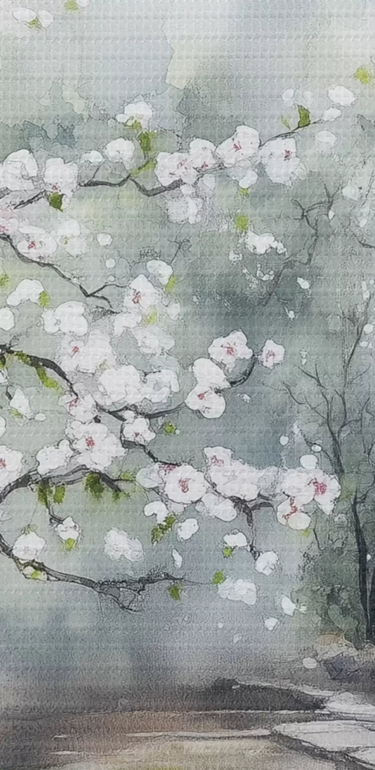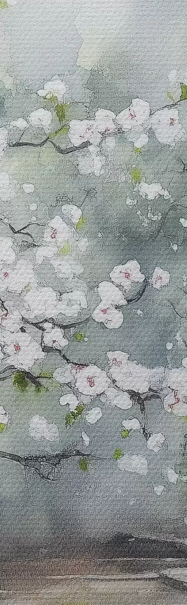 Schilderij Japanse tuin met kersenboom en huis, oosters, aquarelstijl Art. s44309