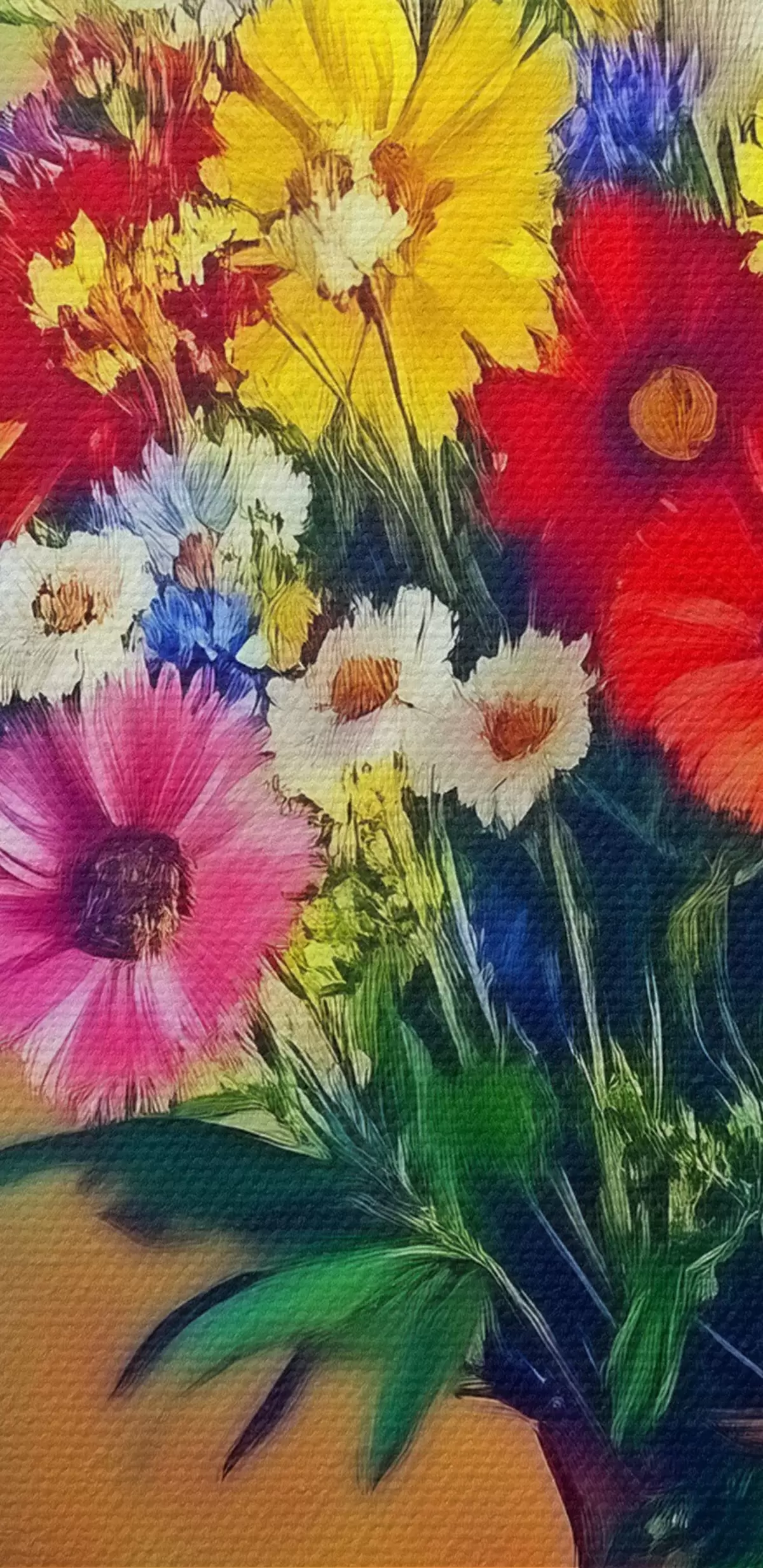 Het schilderij kan direct na ontvangst worden opgehangen. Het schilderij wordt opgespannen op een 2 cm breed houten spieraam.