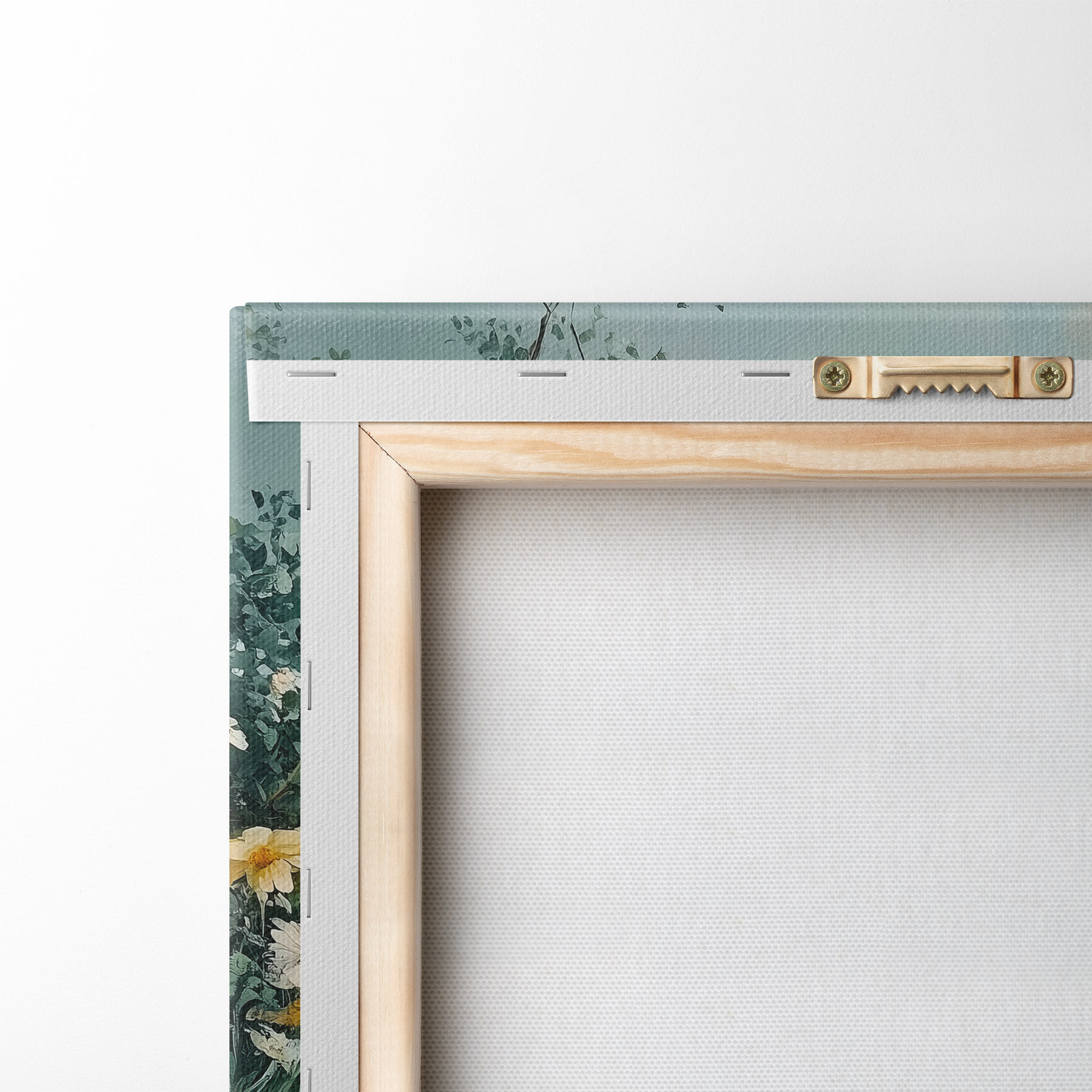 Je kunt het schilderij ophangen aan schroeven. Hiervoor leveren we bevestigingen bij onze foto's, zodat je de foto gemakkelijk kunt ophangen.