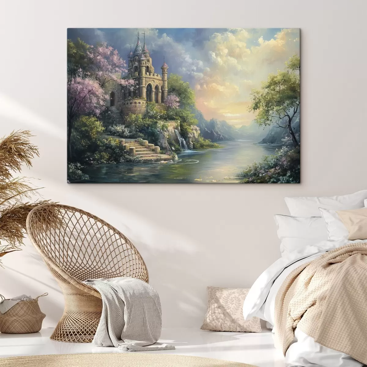 Schilderij Kasteel aan de oever van het meer Art. s44329