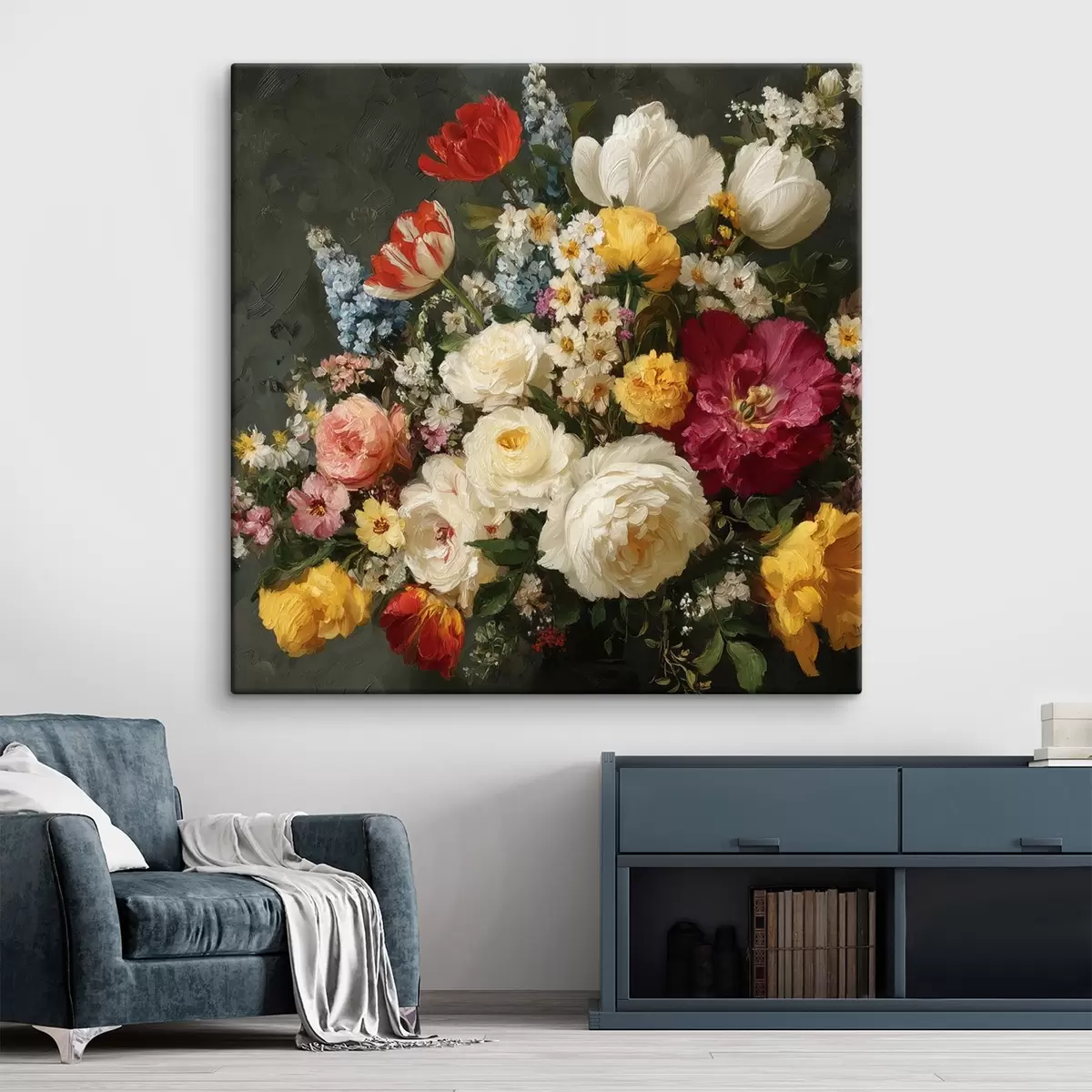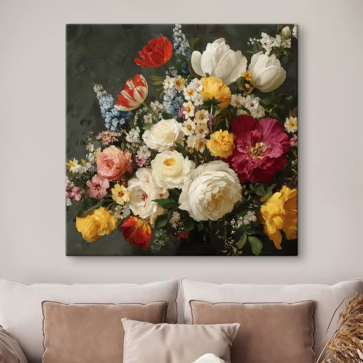 Schilderijen Boeket van diverse bloemen met rijke tinten s44334