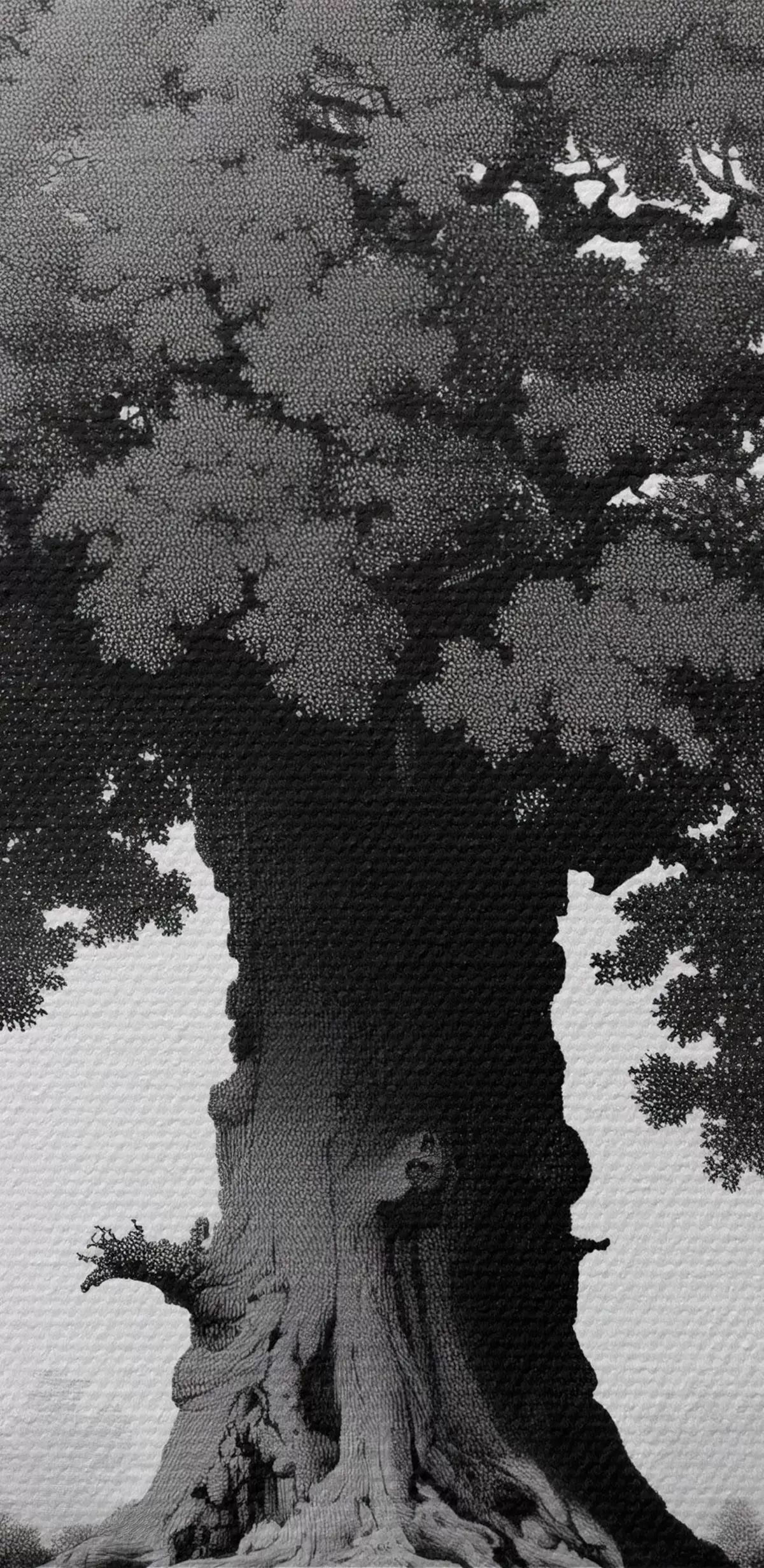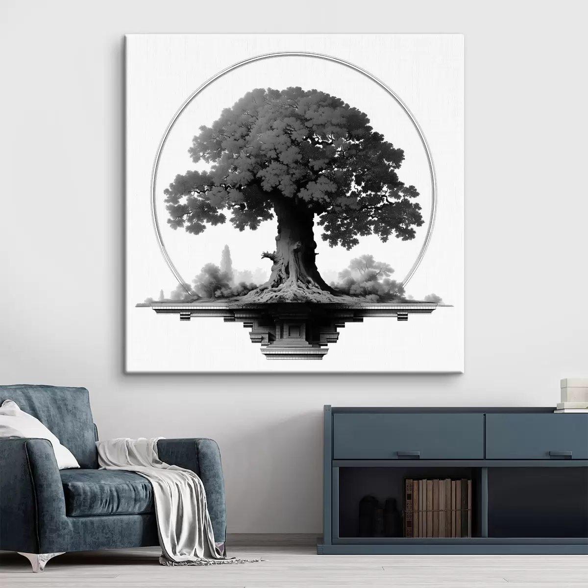 Schilderij Monochrome boom met een machtige stam en uitgestrekte kroon Art. s44346
