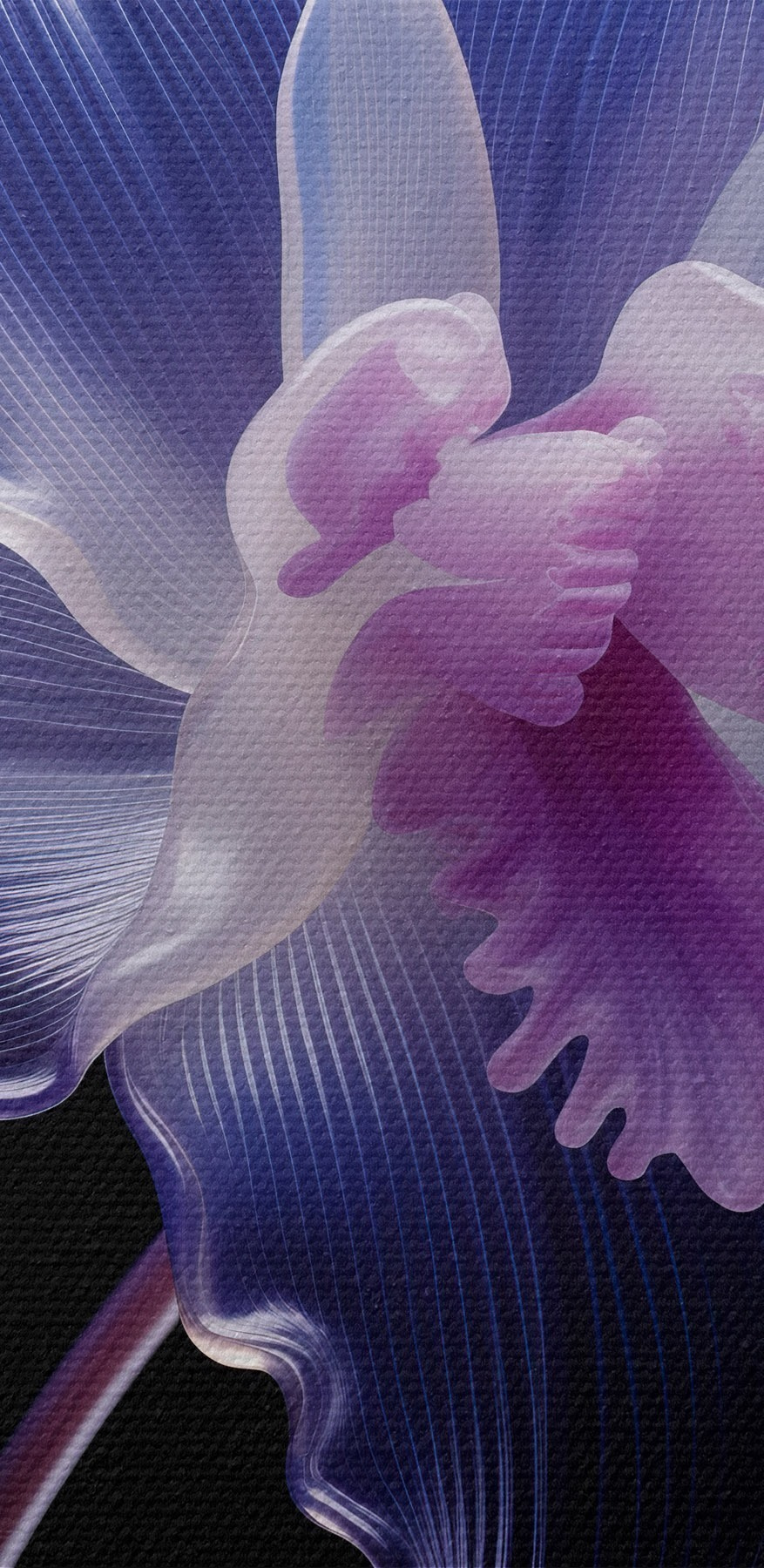 Schilderij Doorschijnende bloemblaadjes met aders op een zwarte achtergrond Art. s44347