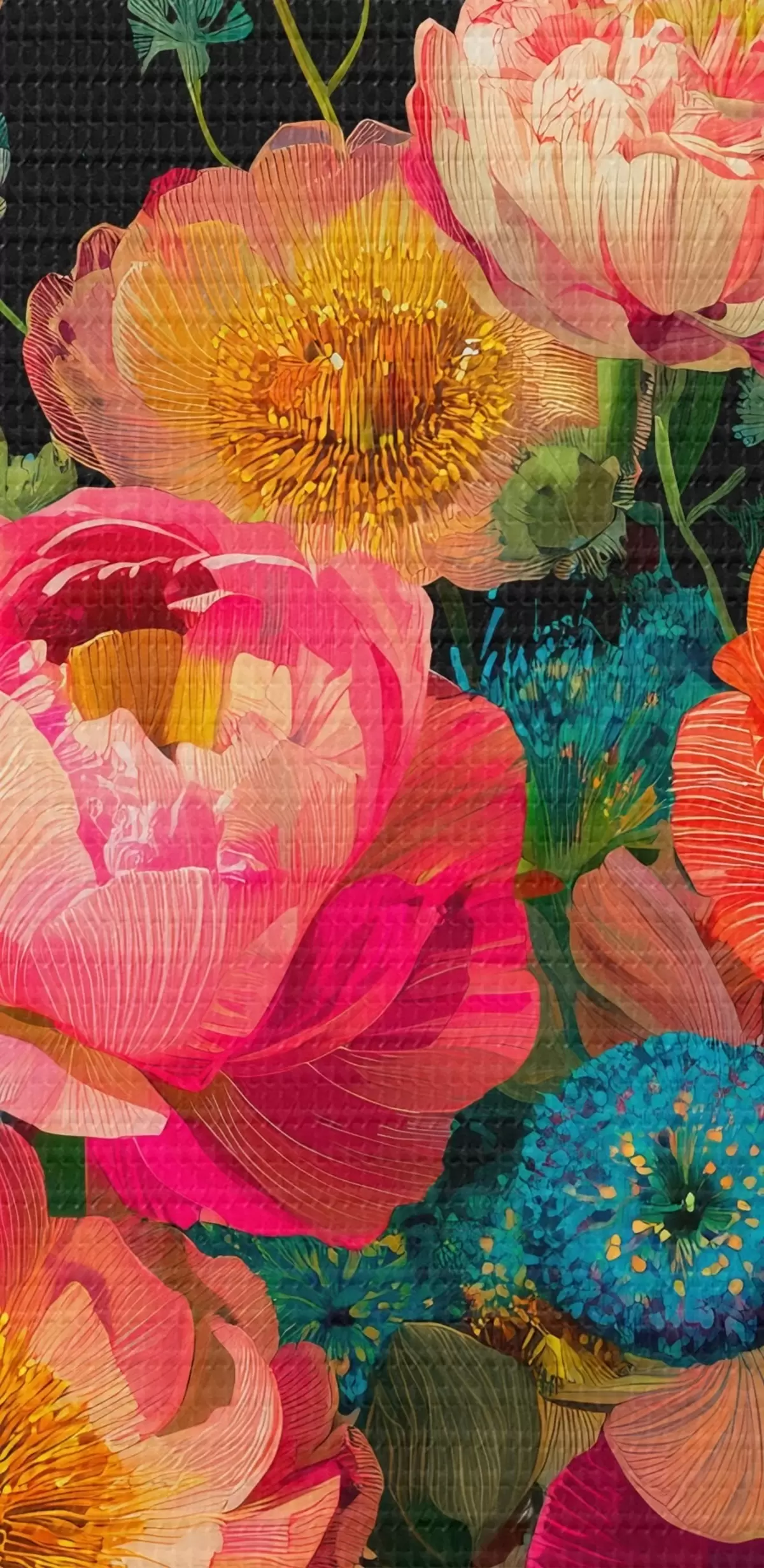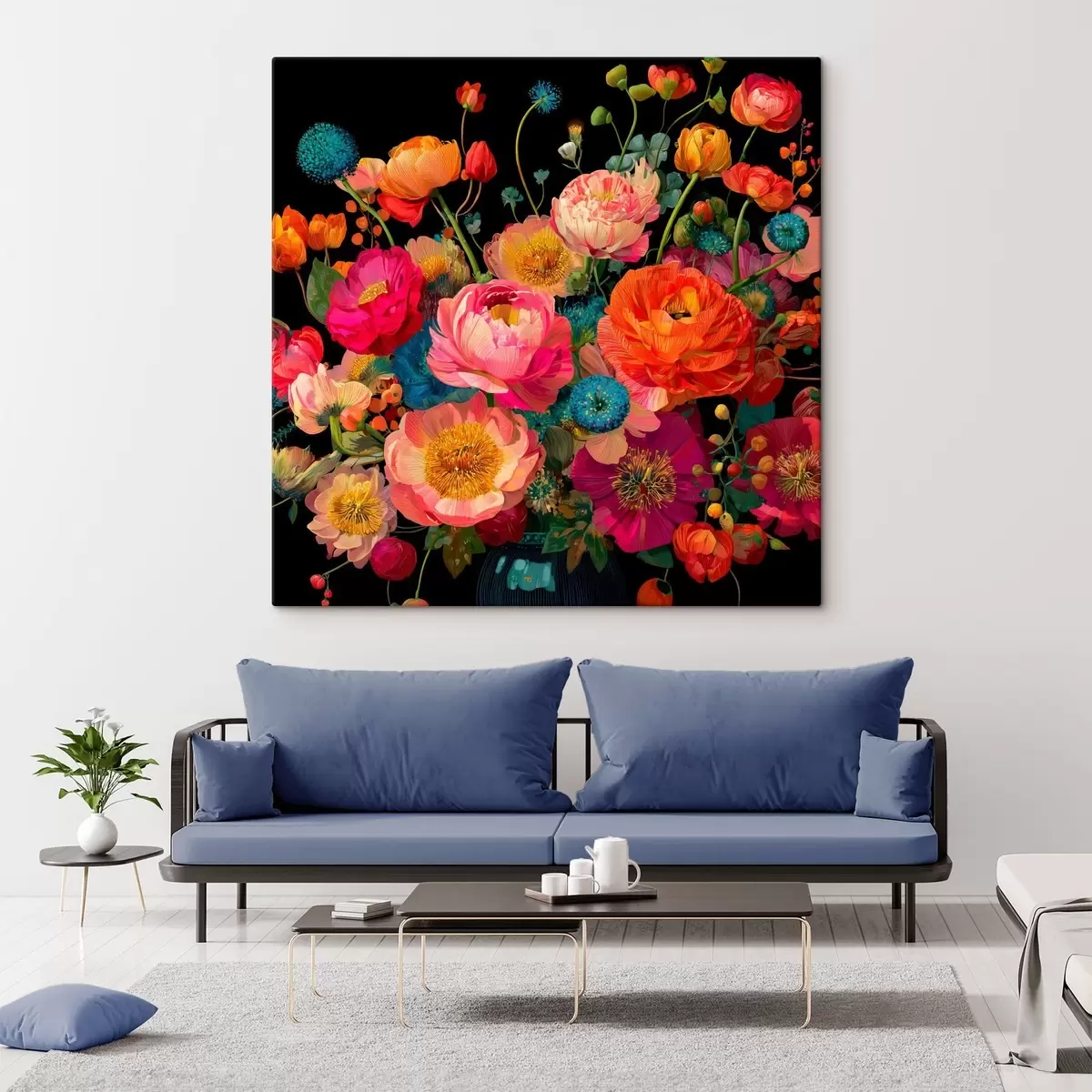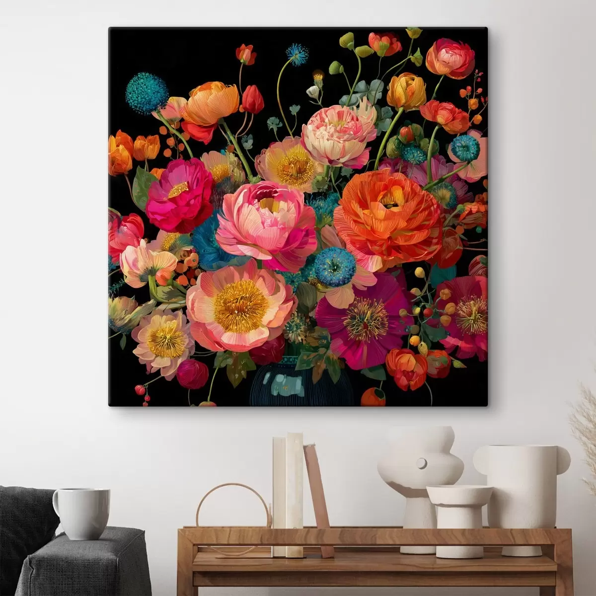 Schilderij Extravaganza bloemen op zwarte achtergrond Art. s44352