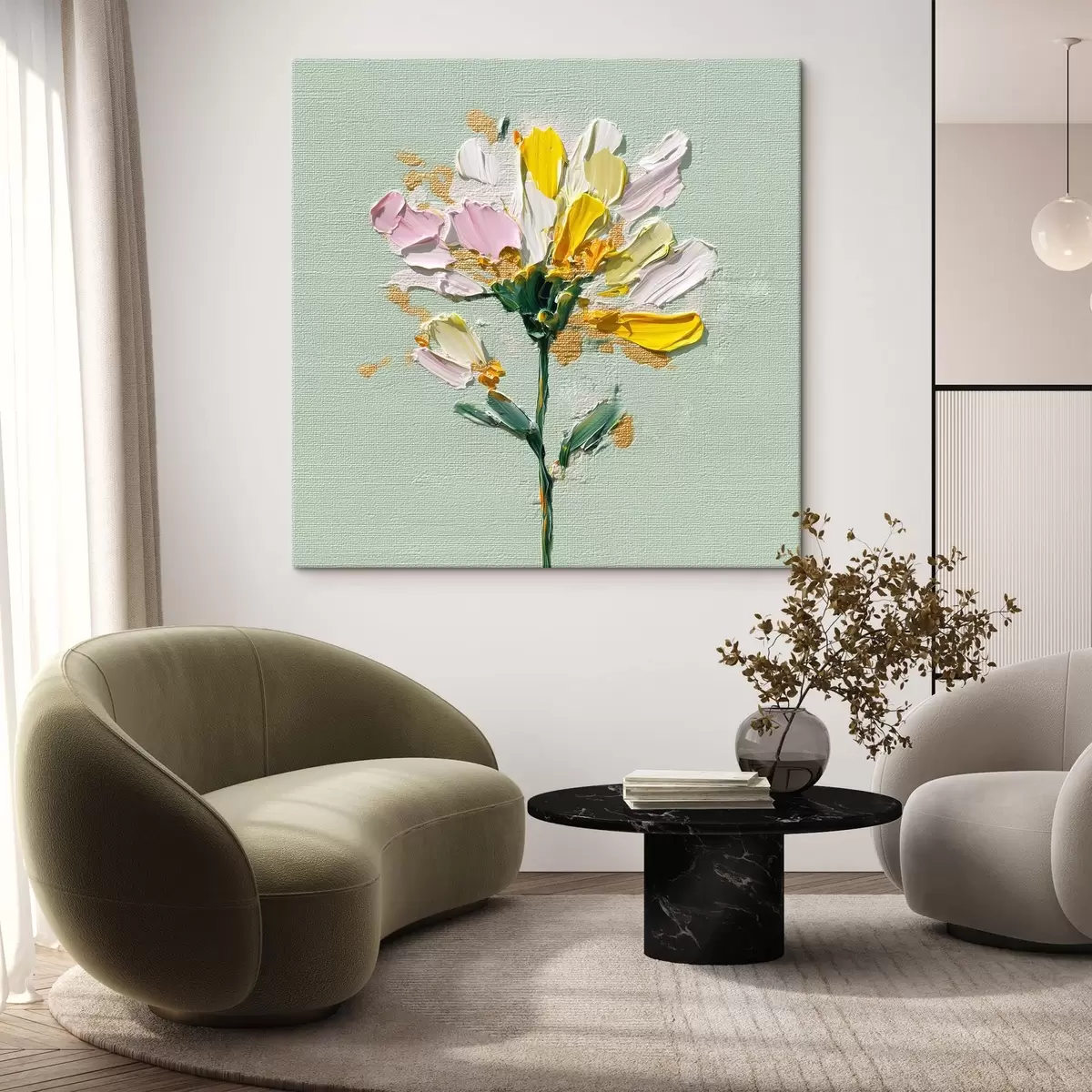 Schilderij Zonnig boeket op een mint achtergrond Art. s44354
