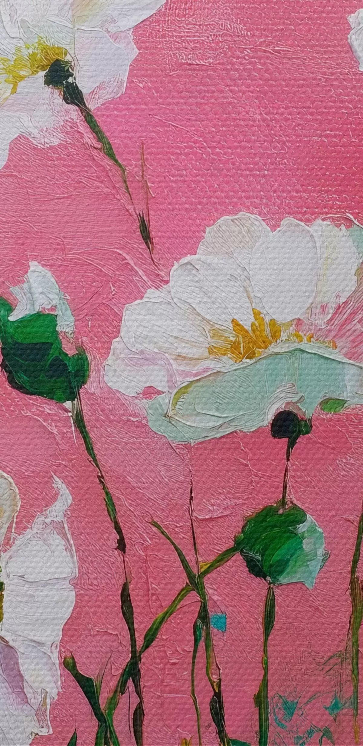 Schilderij Witte bloemen op een roze achtergrond Art. s44360