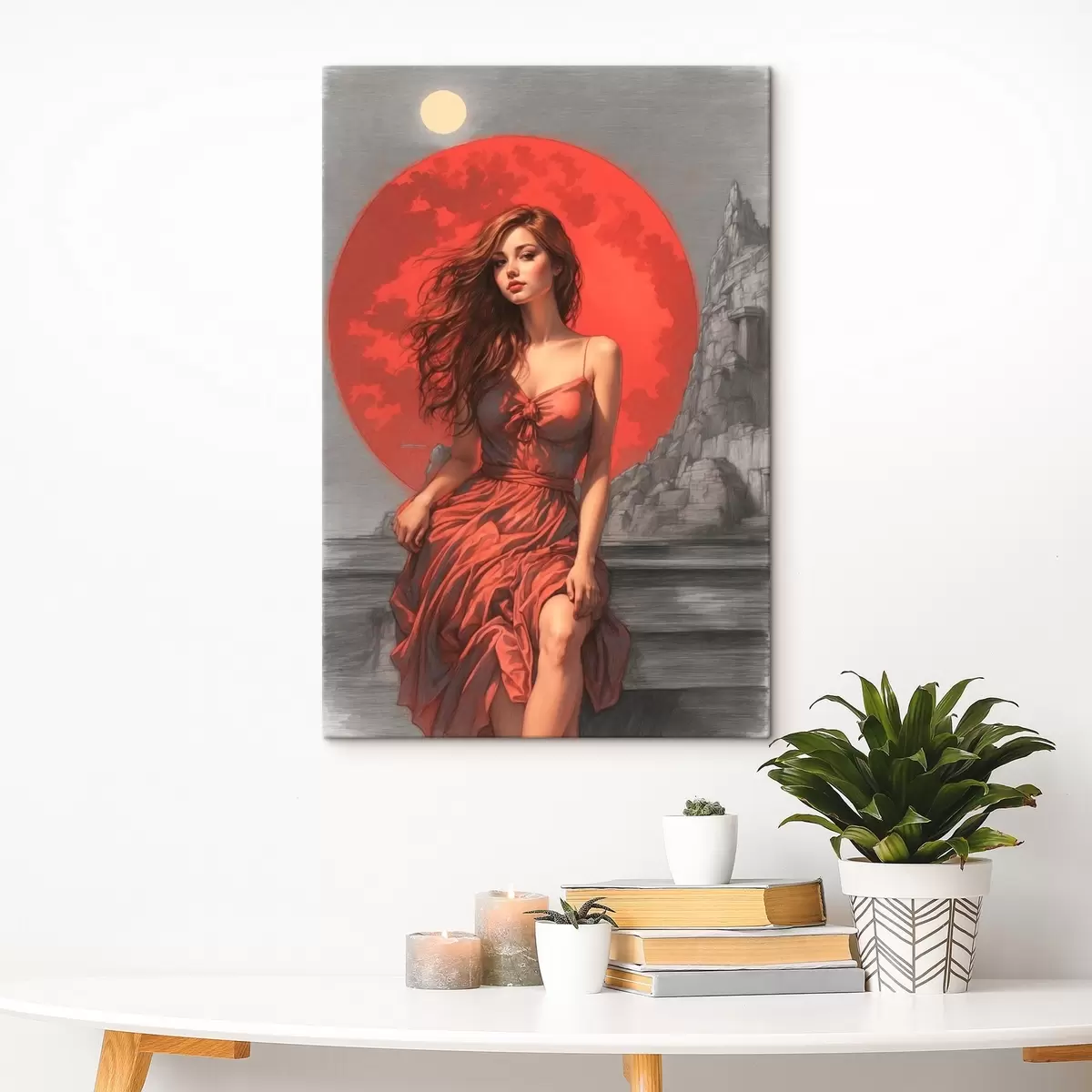 Schilderij Meisje op rode maanachtergrond Art. s44448