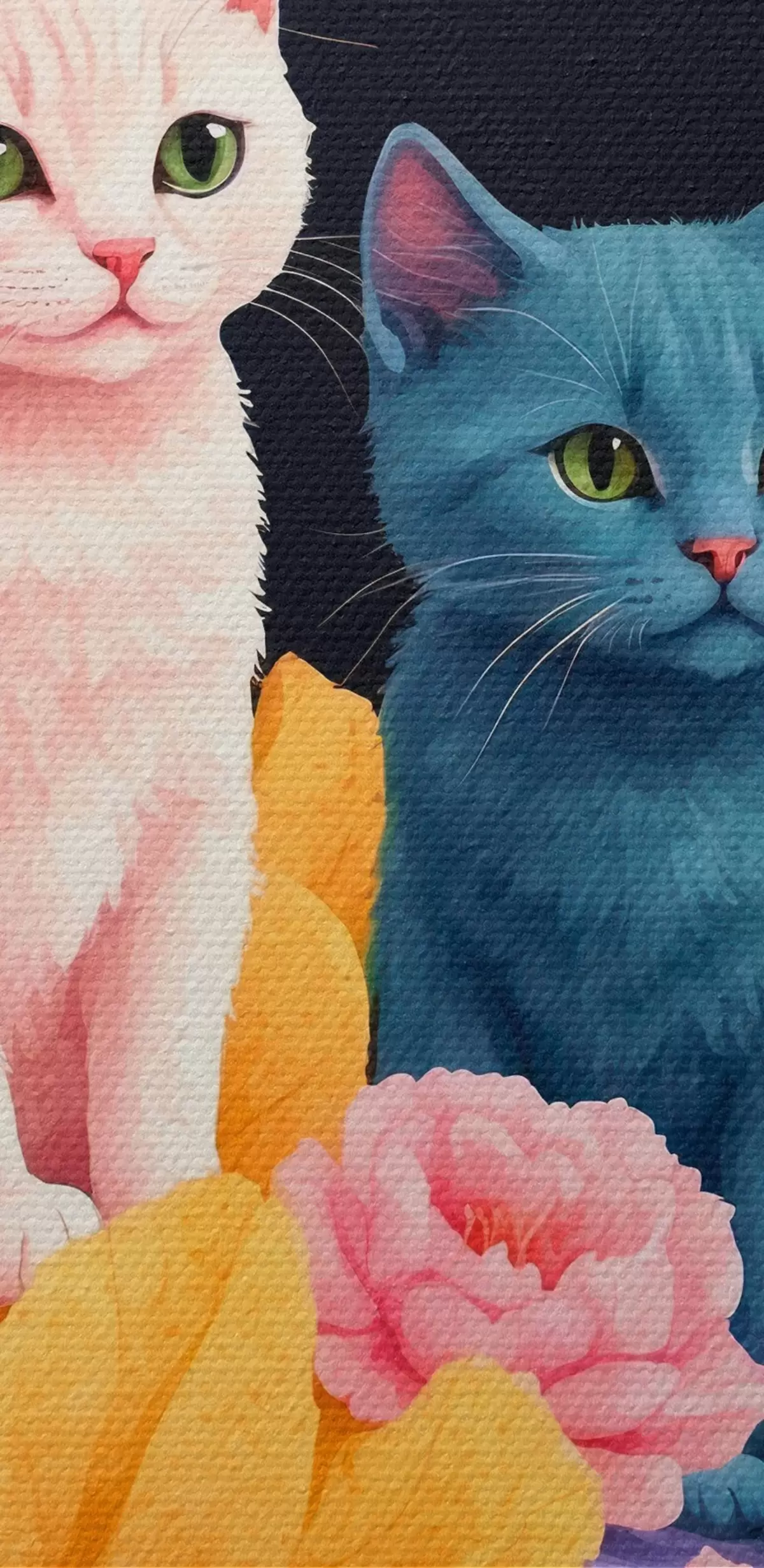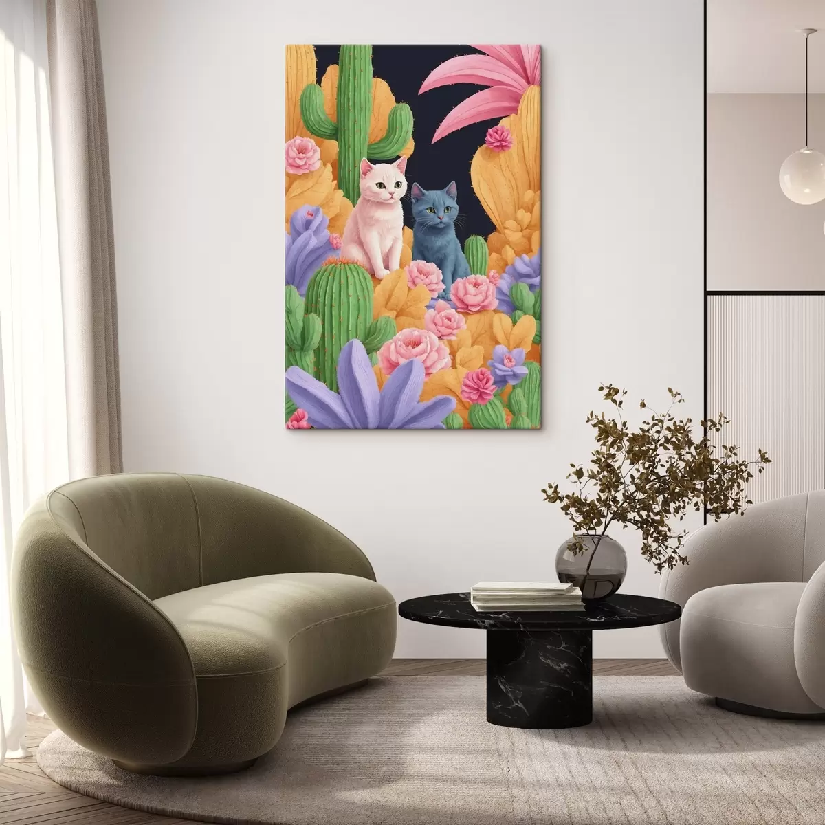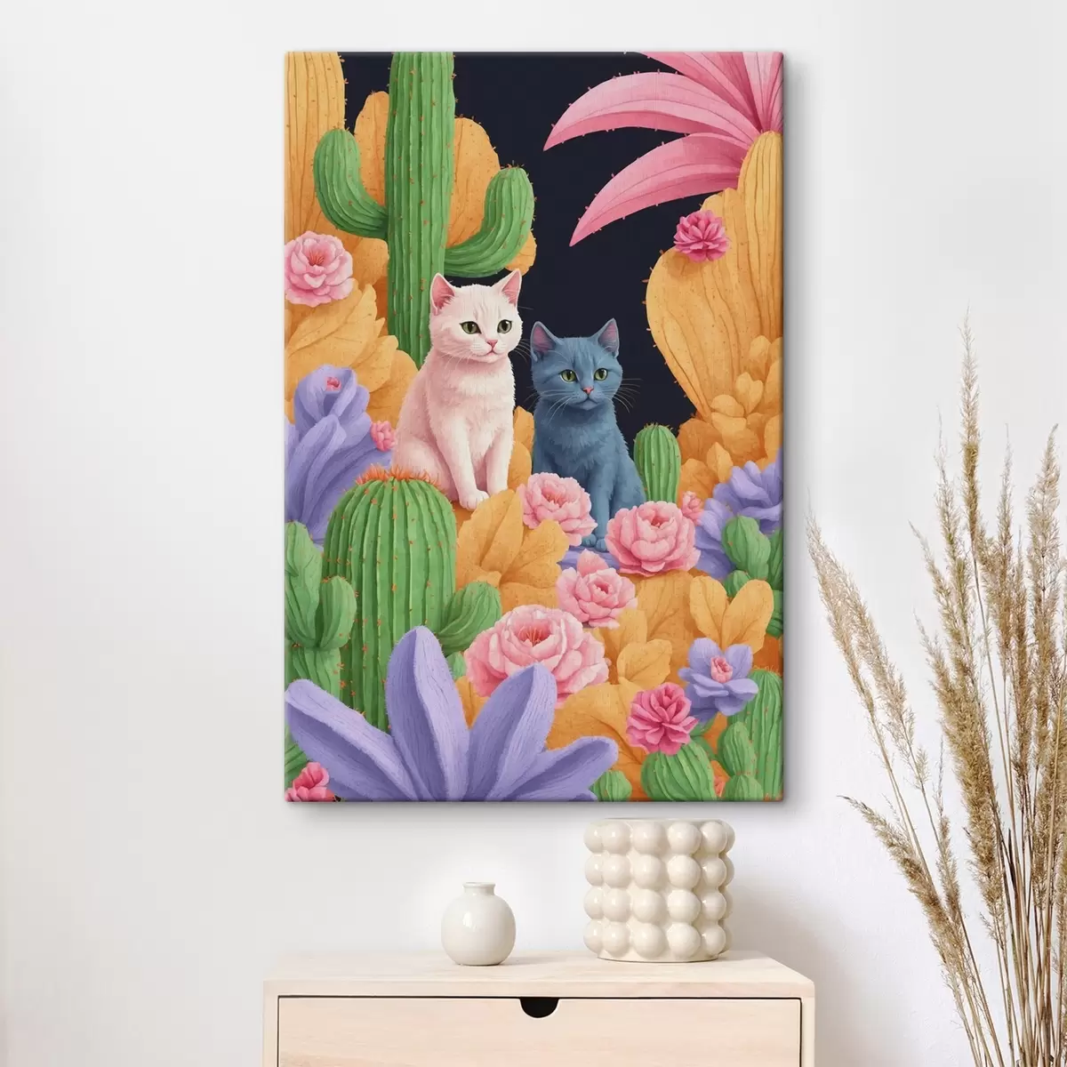 Schilderij Kunstmatige katten tussen bloemen en cactussen Art. s44452