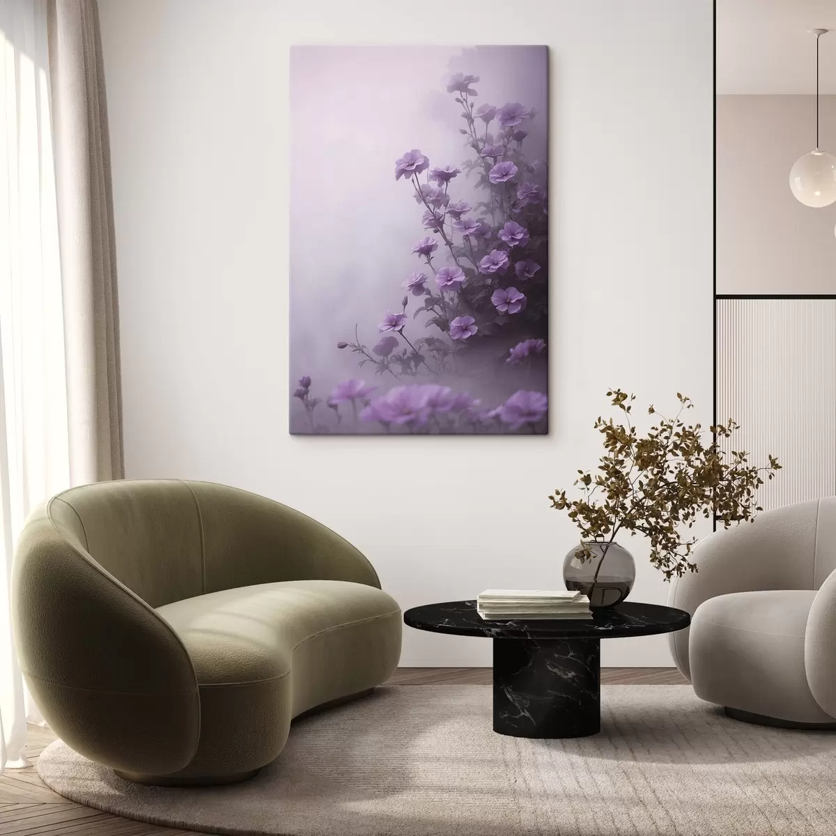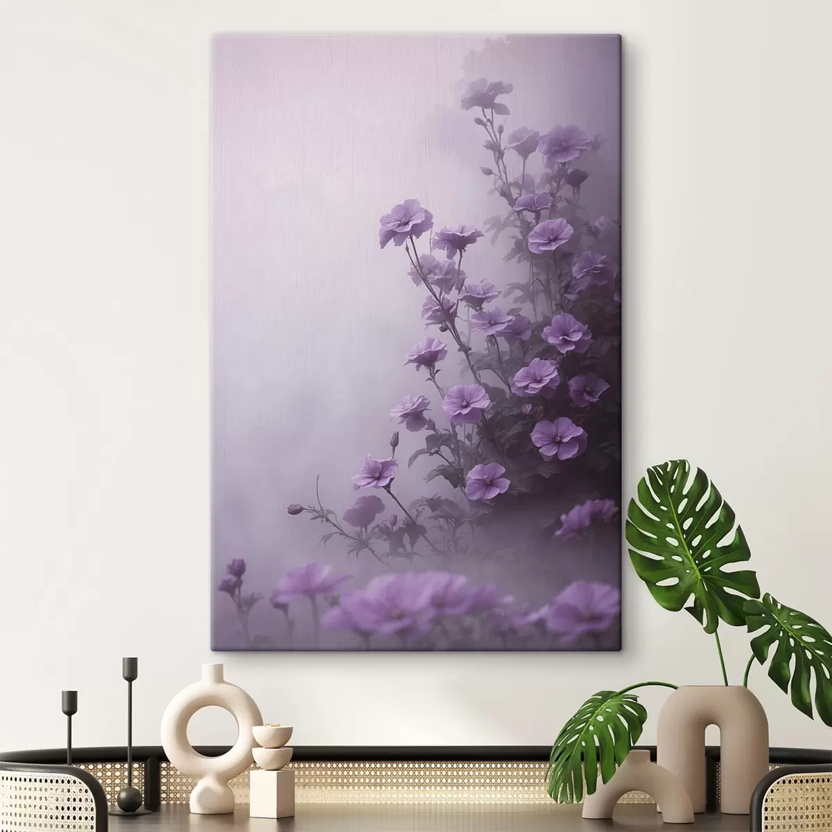 Schilderij Paarse bloemen in mist Art. s44456