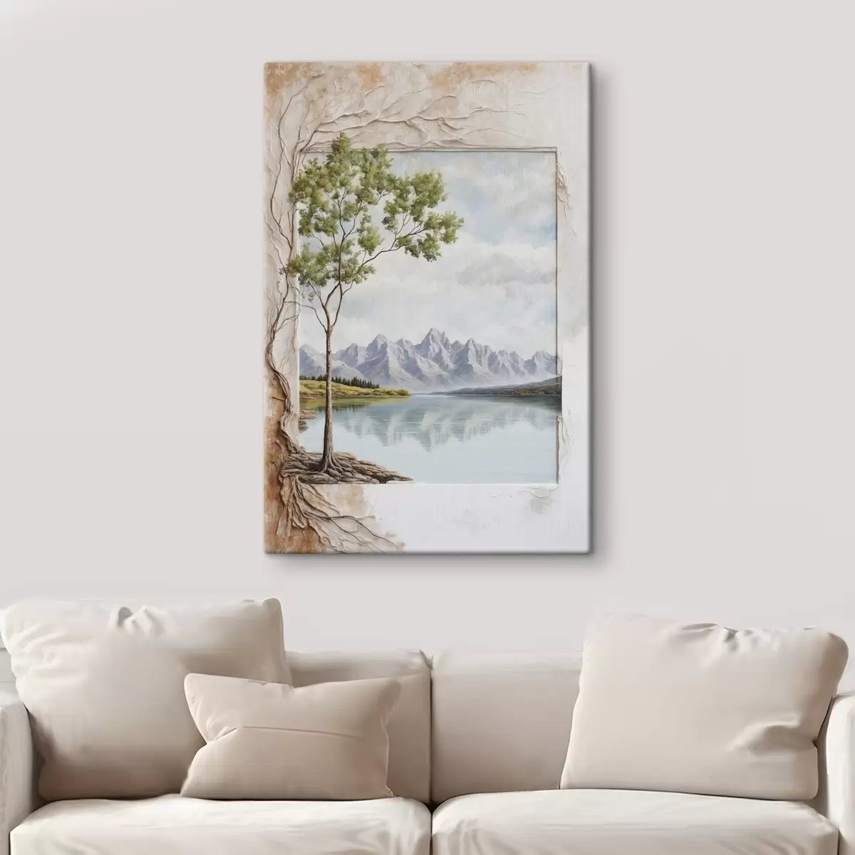 Schilderij Uitzicht op meer en besneeuwde bergen in frame Art. s44458