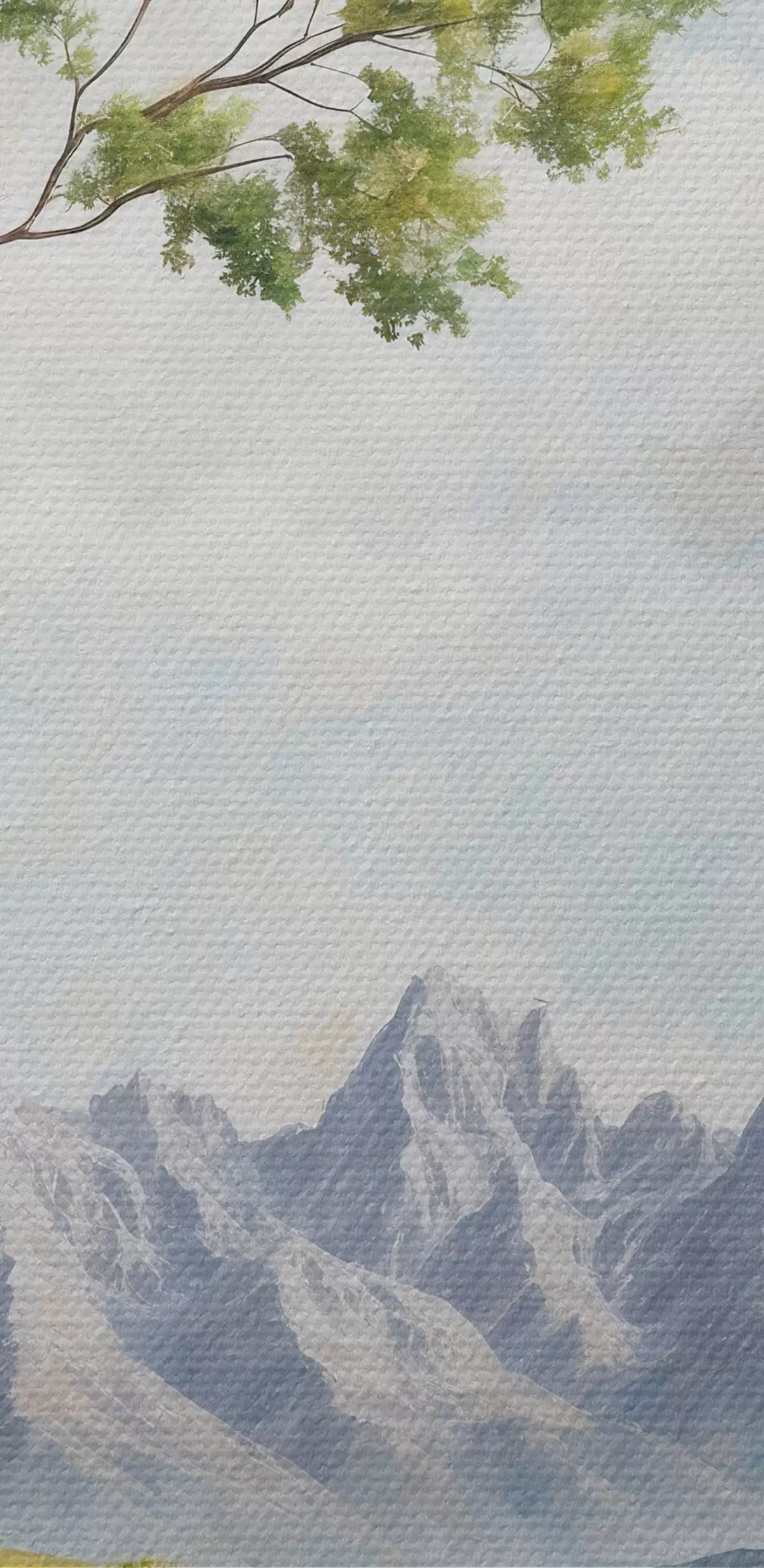 Het schilderij kan direct na ontvangst worden opgehangen. Het schilderij wordt opgespannen op een 2 cm breed houten spieraam.