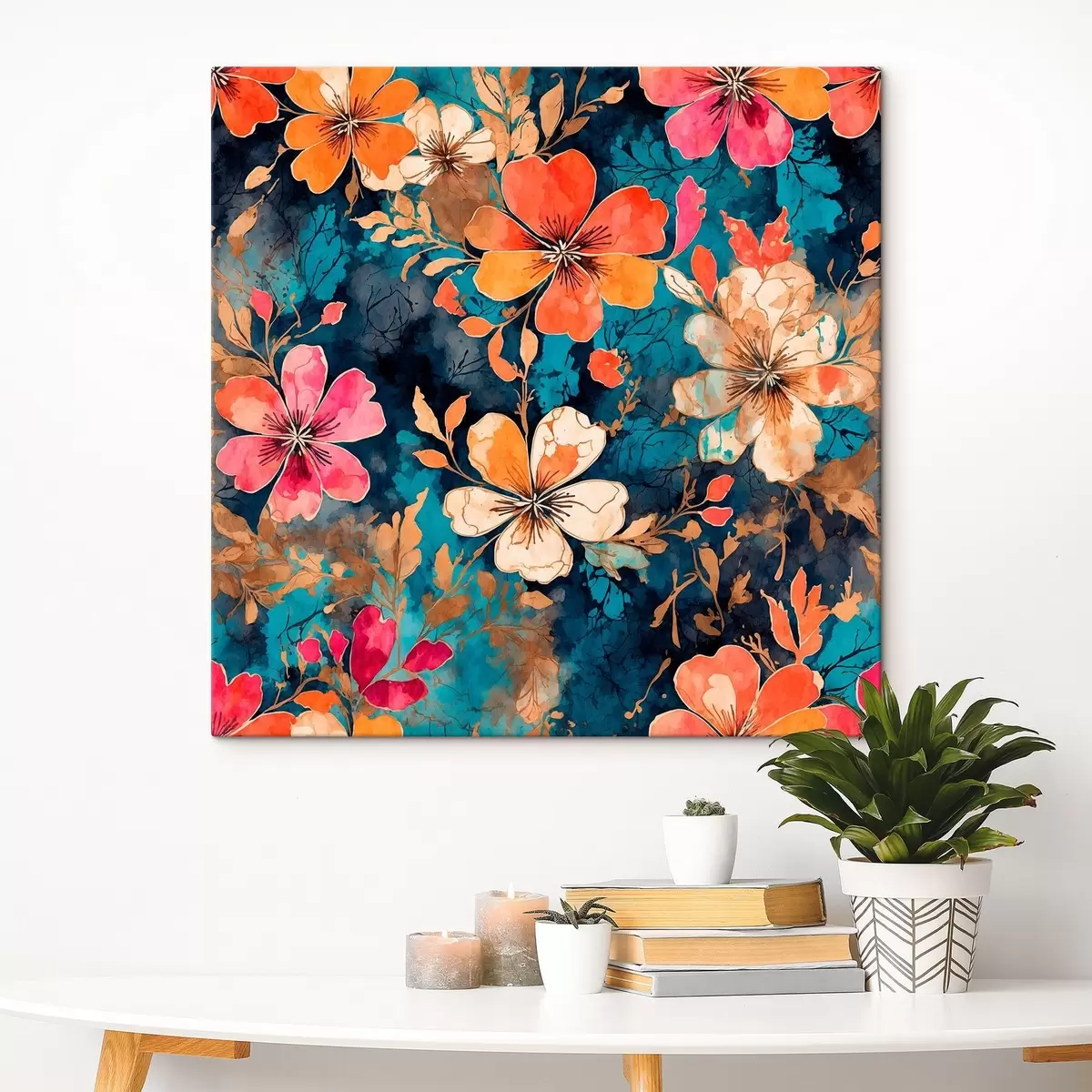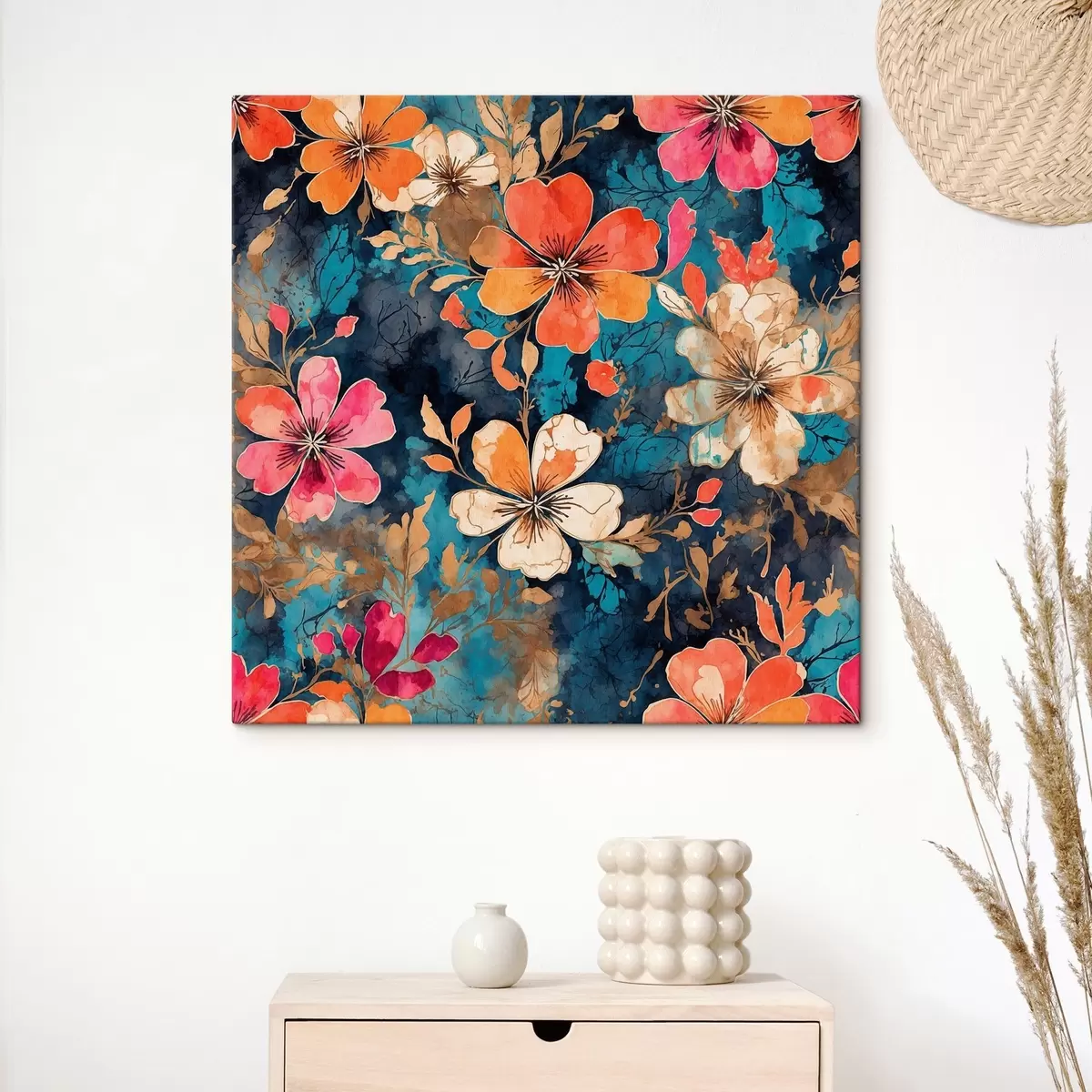 Schilderij Veelkleurig acrylschilderij in donkerblauwe achtergrond Abstract veelkleurig acrylschilderij in donkerblauwe achtergrond blauwe achtergrond Art. s44460