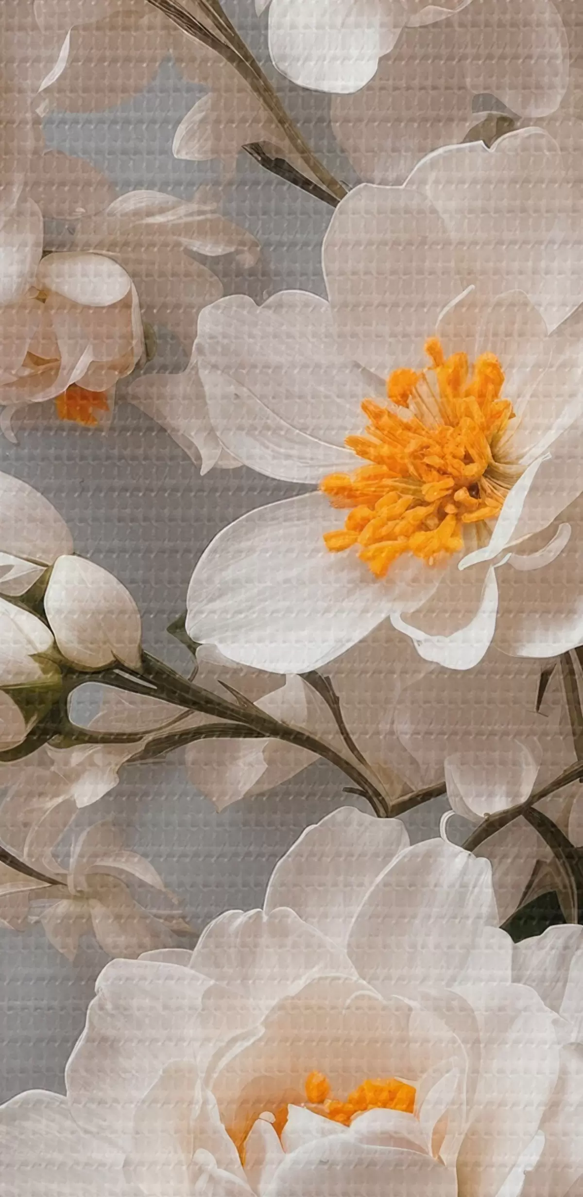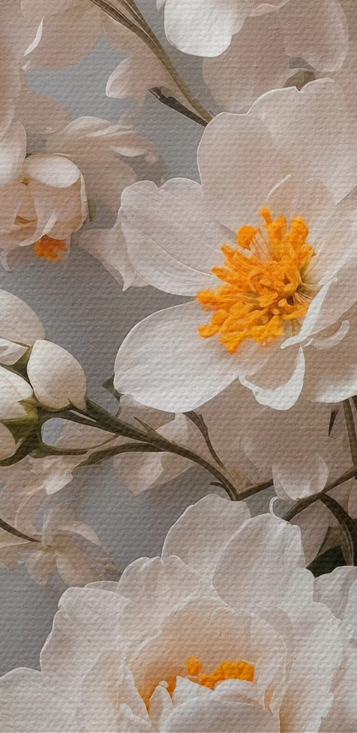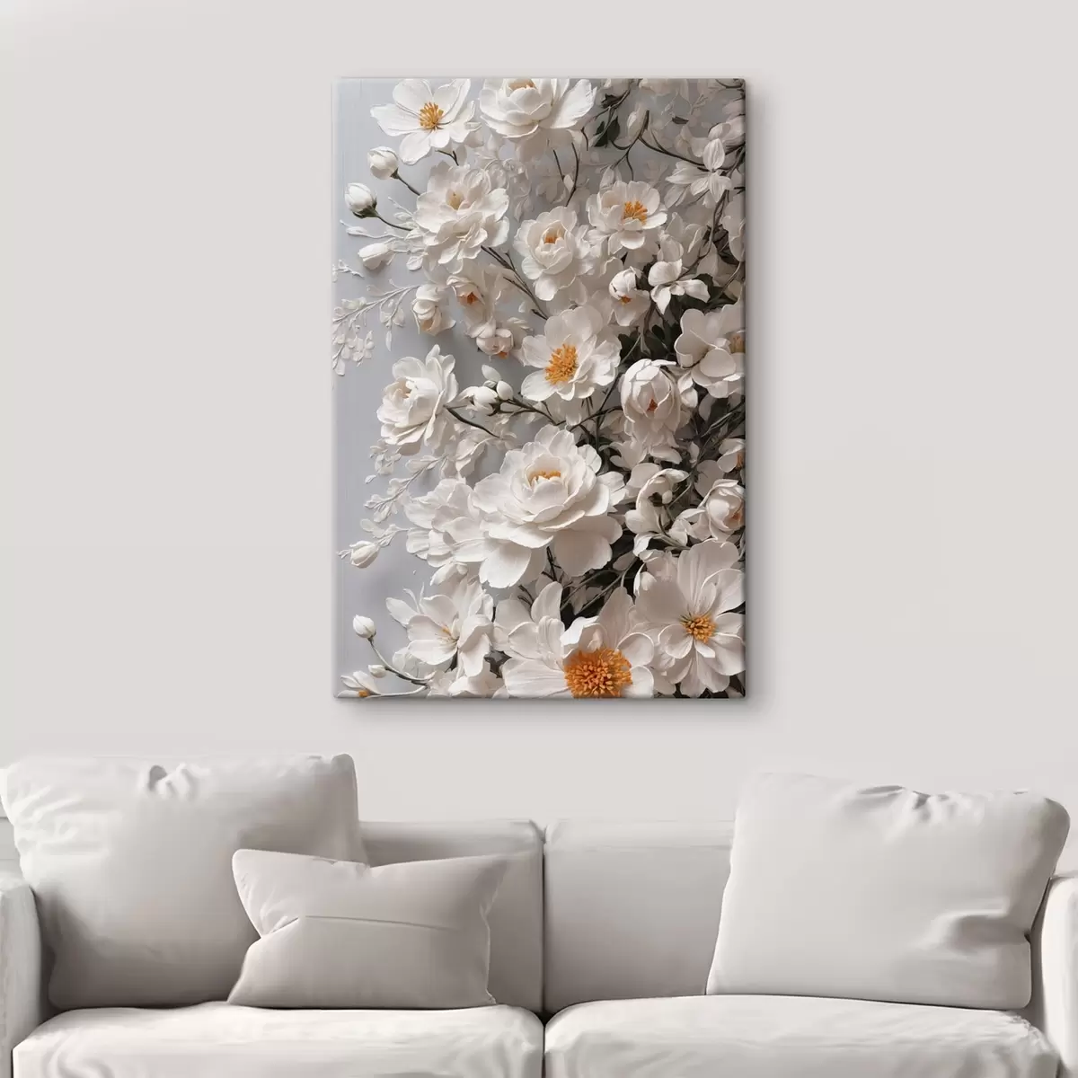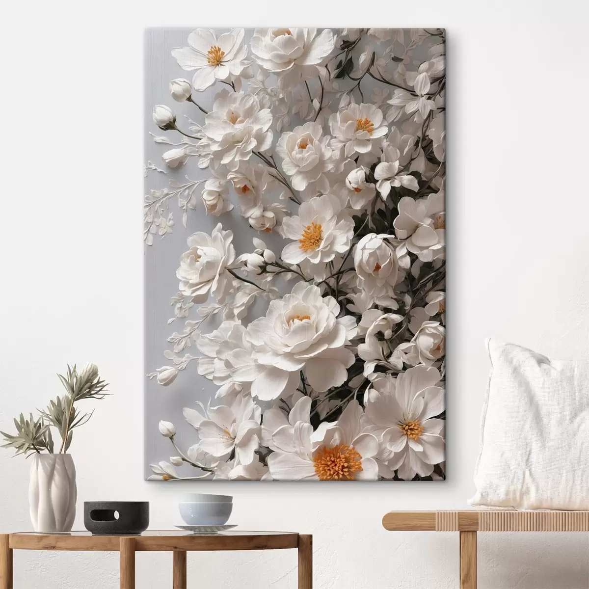 Schilderij Witte bloemen en bladeren op witte achtergrond Art. s44465