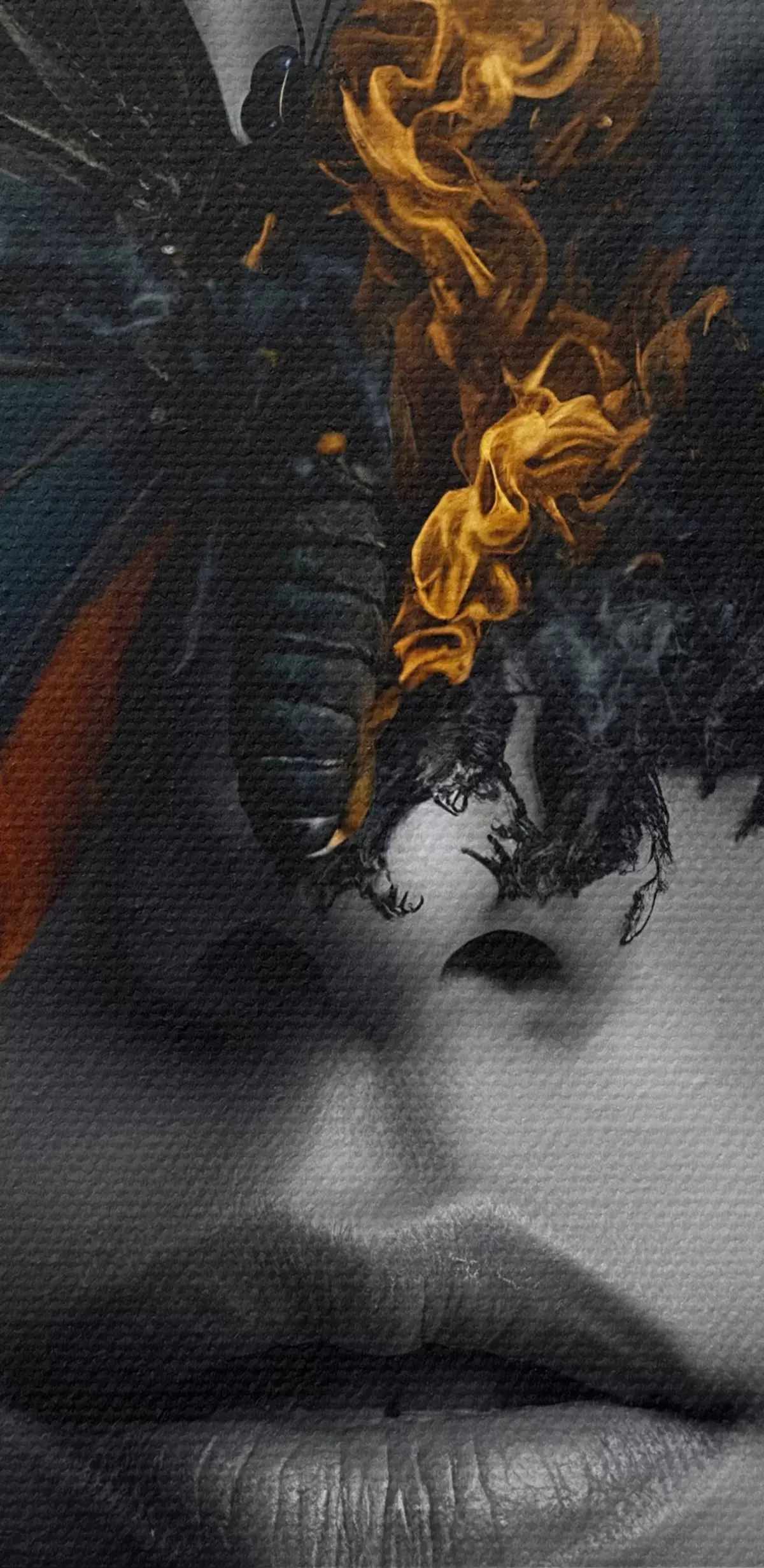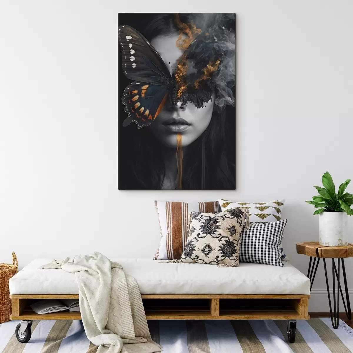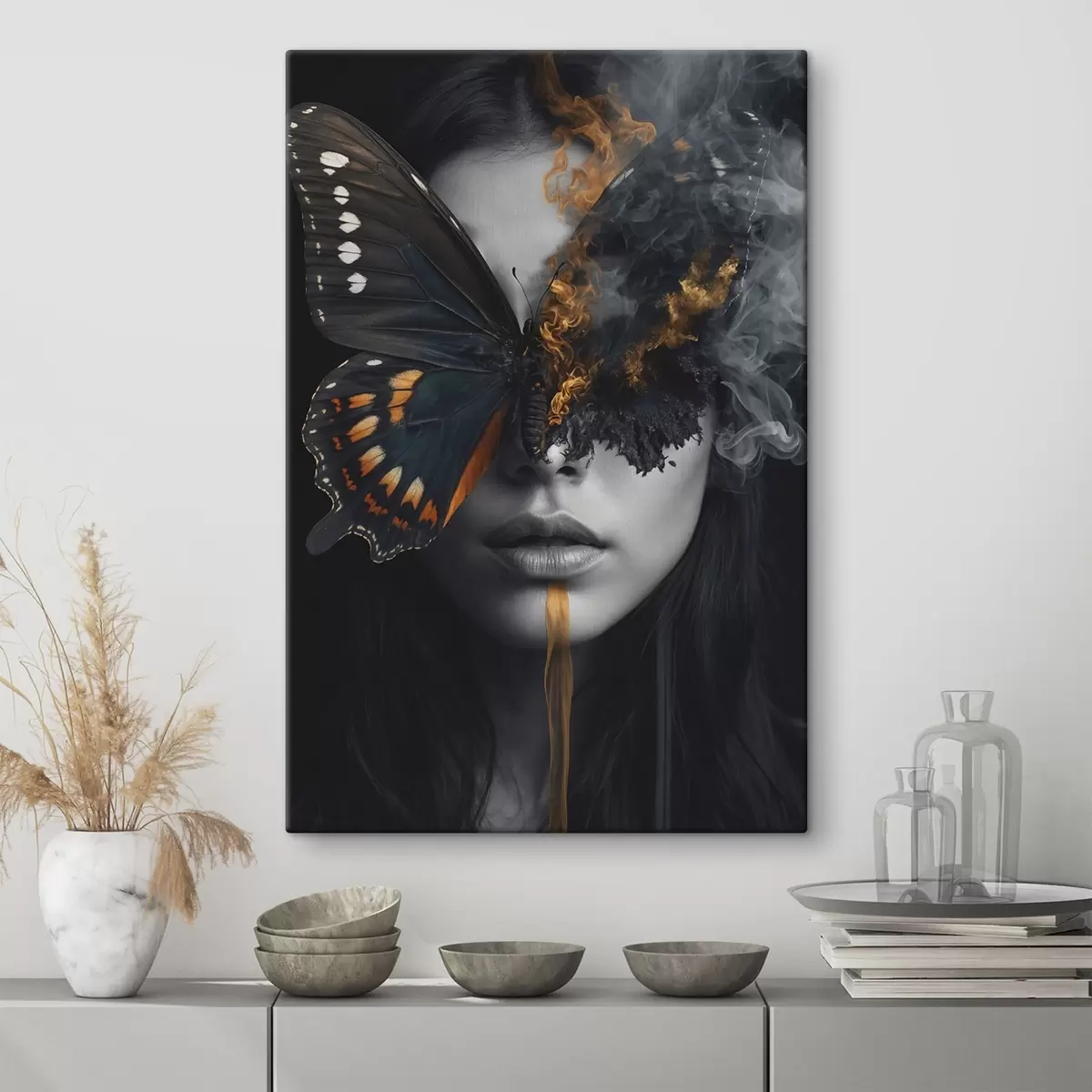 Schilderij Brandende vlinder op het gezicht van een meisje Art. s44468