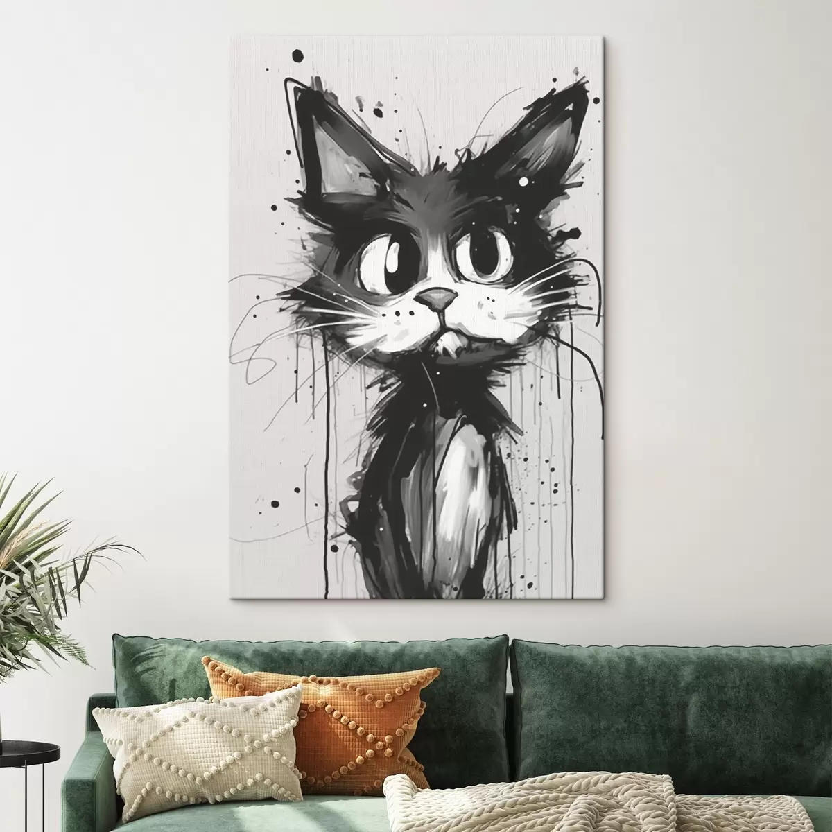 Schilderij Kat in schetsstijl met verfspatten Art. s44483