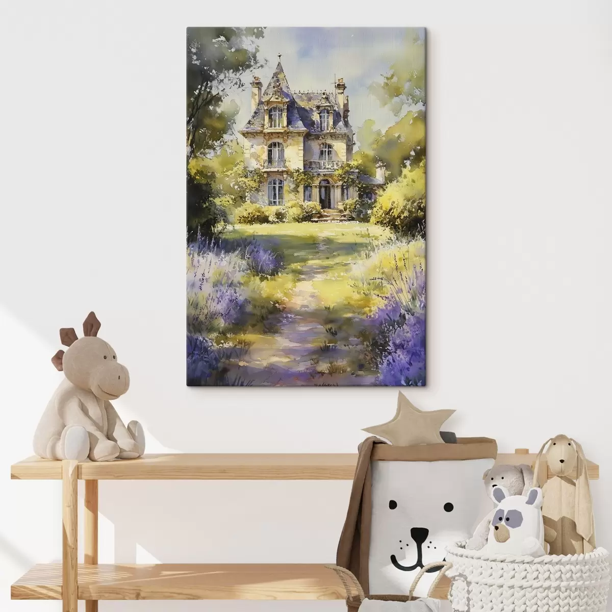 Schilderij Frans plattelandshuisje, aquarelstijl, lavendelvelden Art. s44501