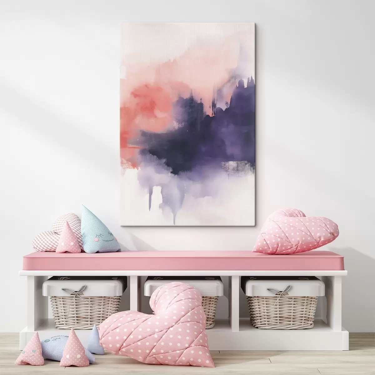 Schilderijen Abstractie in acrylstijl, penseelstreken, paars en roze s44507