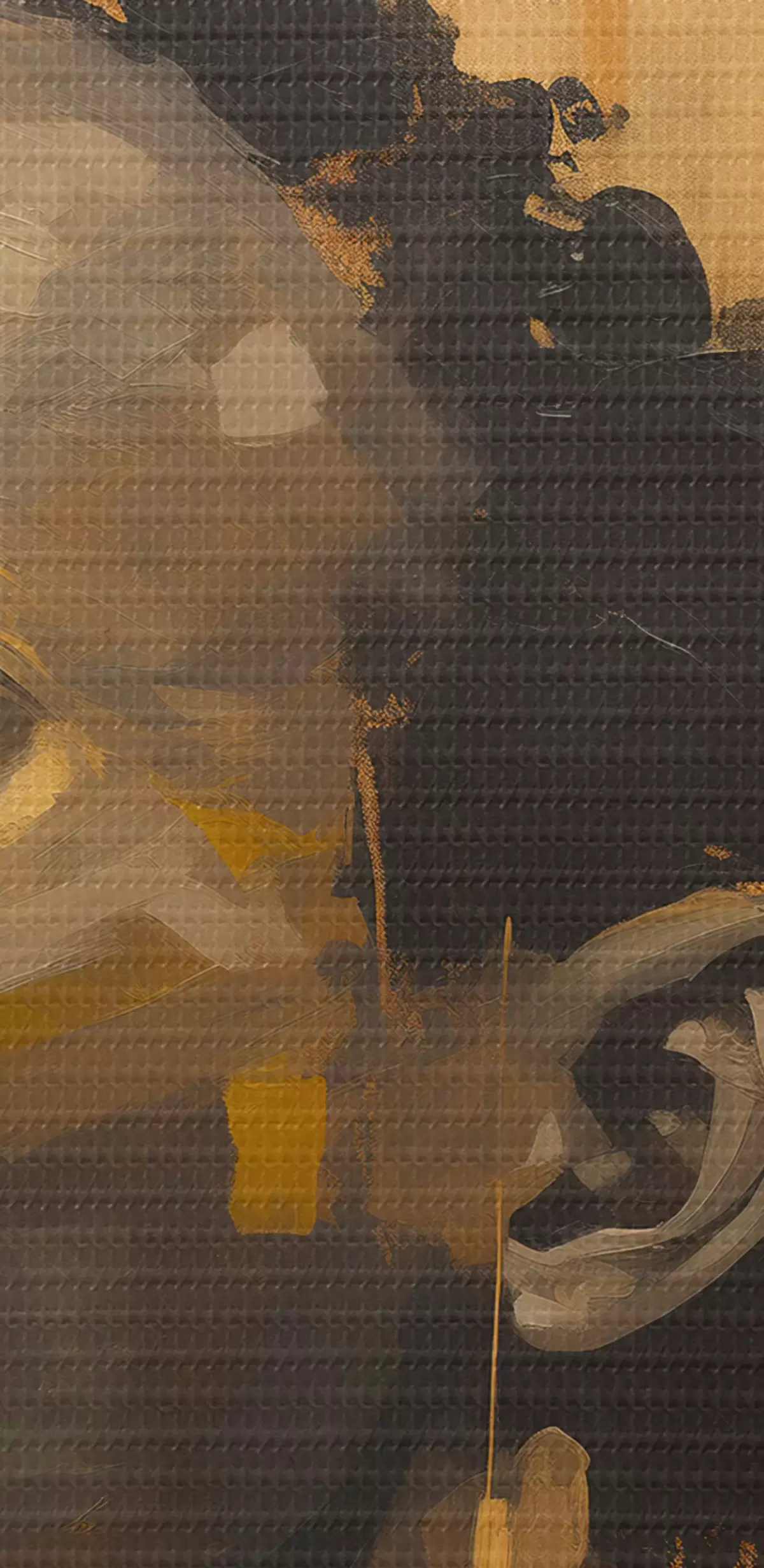 De fijne weving van draden op dit doek lijkt op het oppervlak van professionele schildersdoeken.