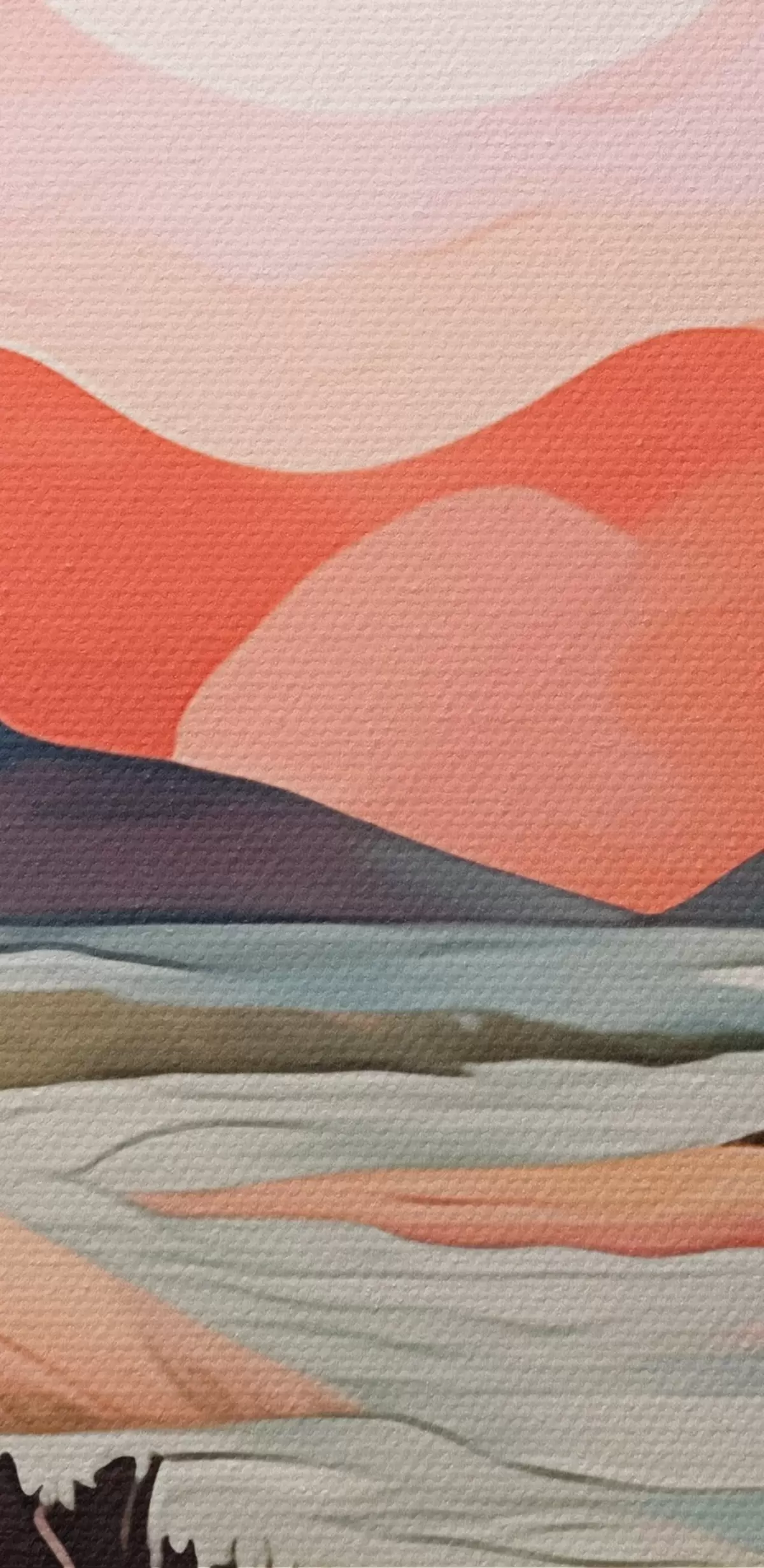 Het schilderij kan direct na ontvangst worden opgehangen. Het schilderij wordt opgespannen op een 2 cm breed houten spieraam.