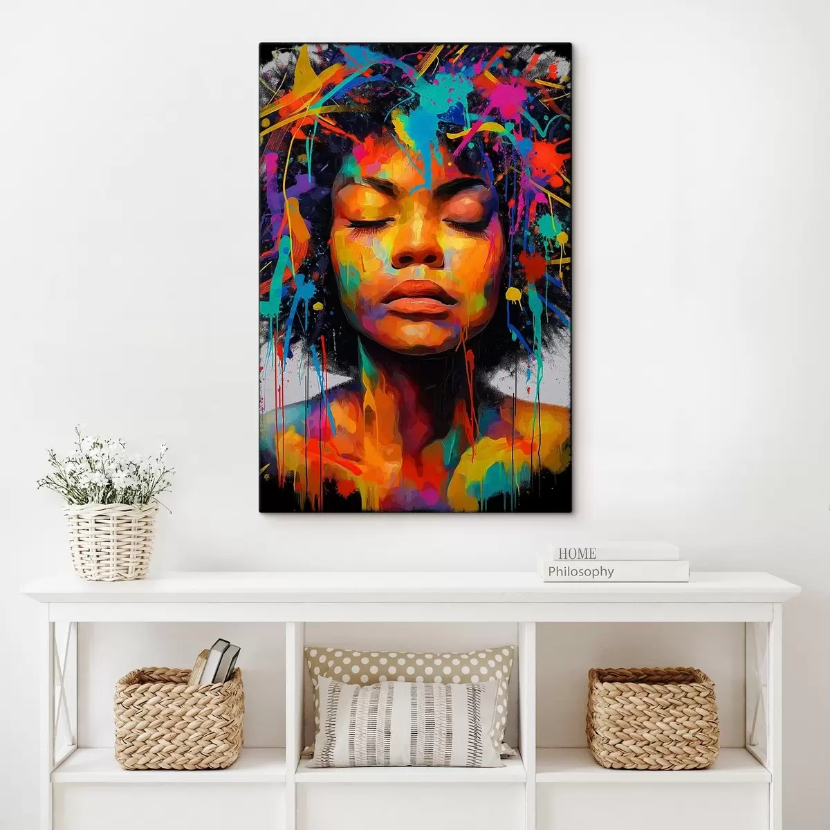Schilderijen Meisje in heldere kleuren, abstracte stijl s44618