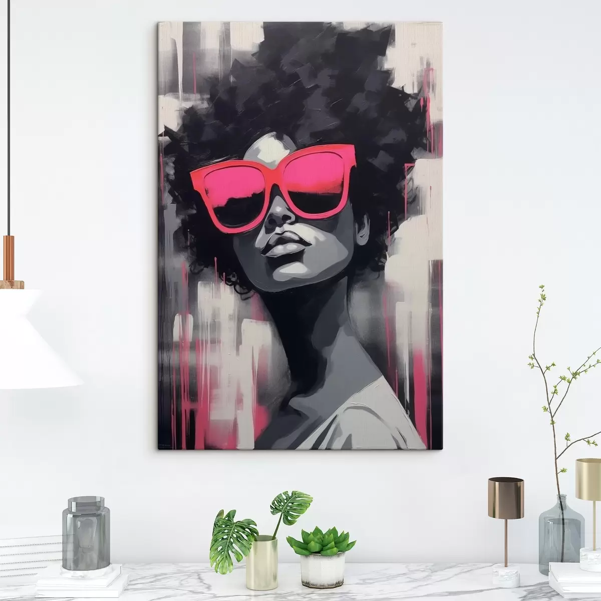 Schilderij Meisje met roze bril, zwart-witte stijl Art. s44624