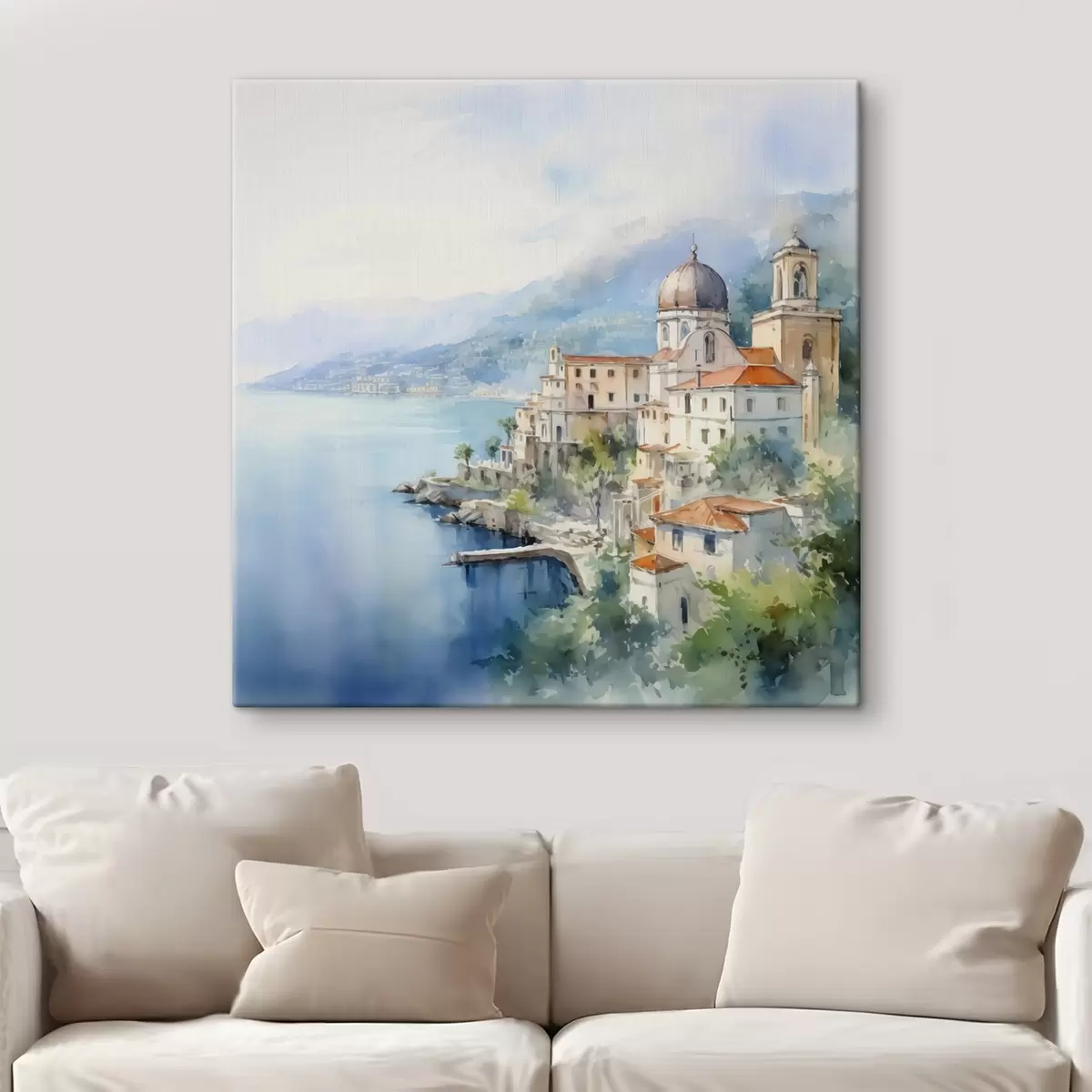 Schilderijen Stad aan zee imitatie van aquarel s44635