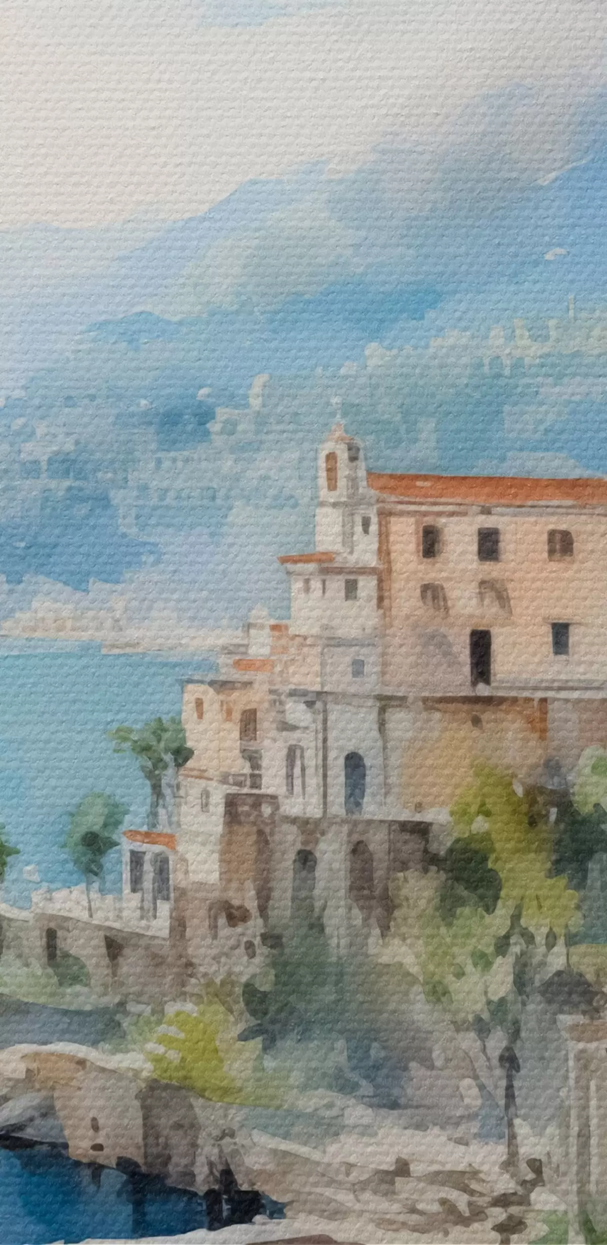 Schilderij Stad aan zee imitatie van aquarel Art. s44635