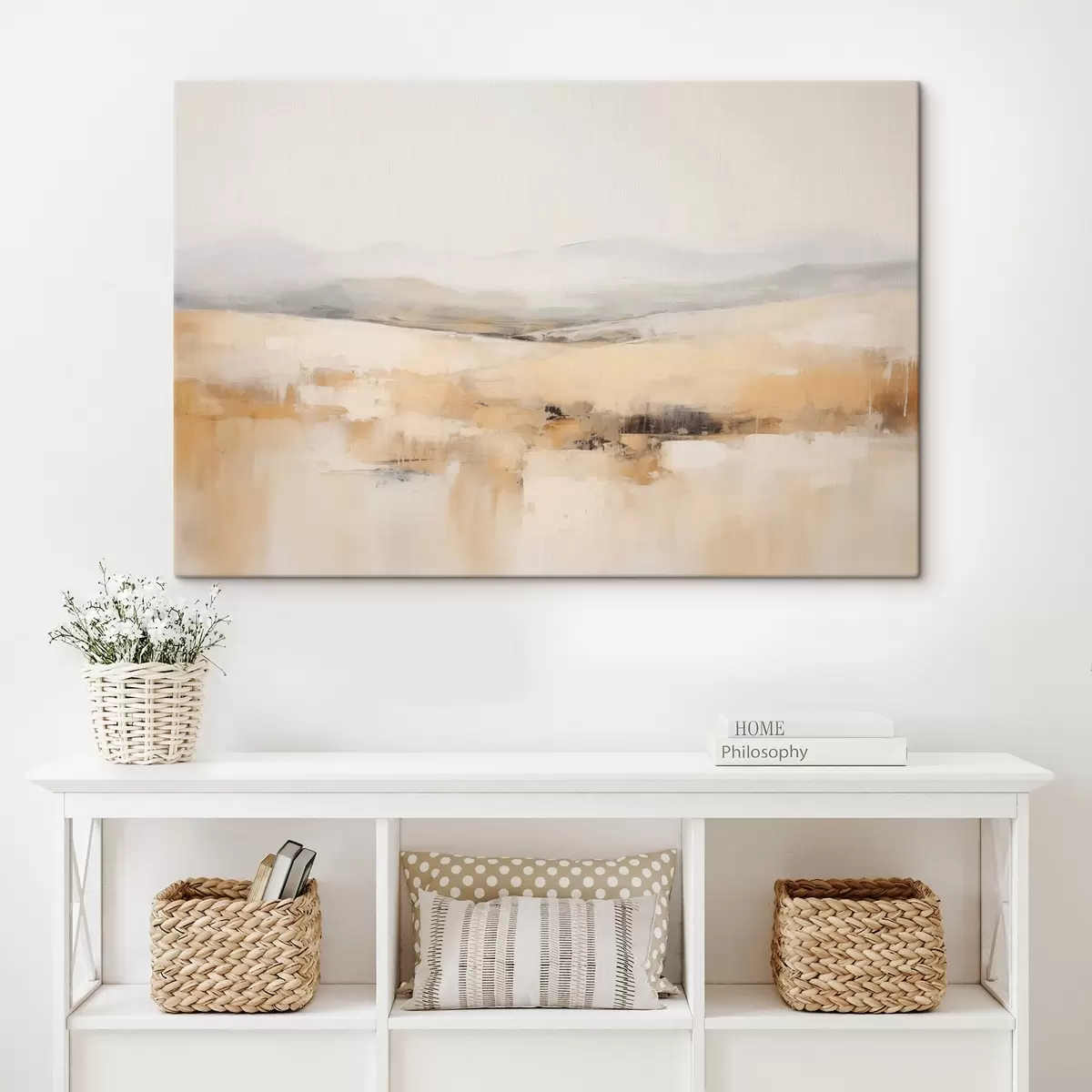 Je kunt het schilderij ophangen aan schroeven. Hiervoor leveren we bevestigingen bij onze foto's, zodat je de foto gemakkelijk kunt ophangen.